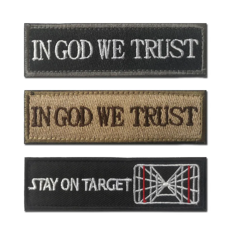 В Боге, мы доверяем, оставайтесь на мишени, вышитые липучки с крючком и кольцом, значок одежды, армейские тактические военные шляпы, наклейки для сумок