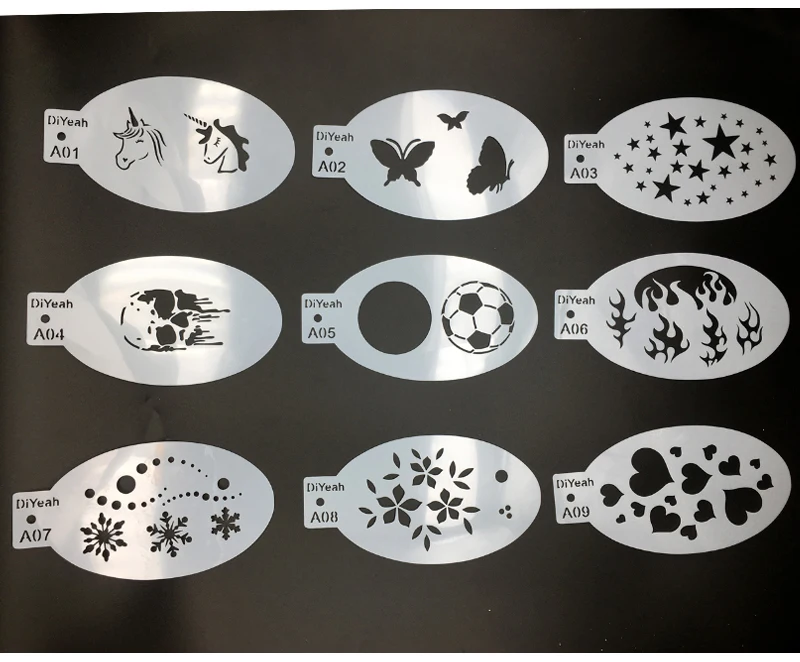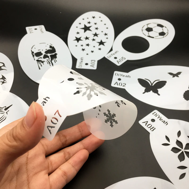 9 шт. трафареты для боди-рисования лица искусство на Хэллоуин День рождения Сделай Сам макияж штампы Временные татуировки многоразовые трафареты пластик