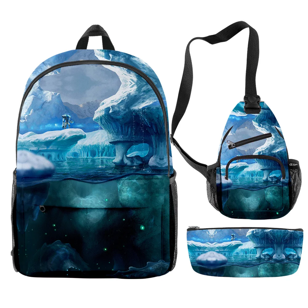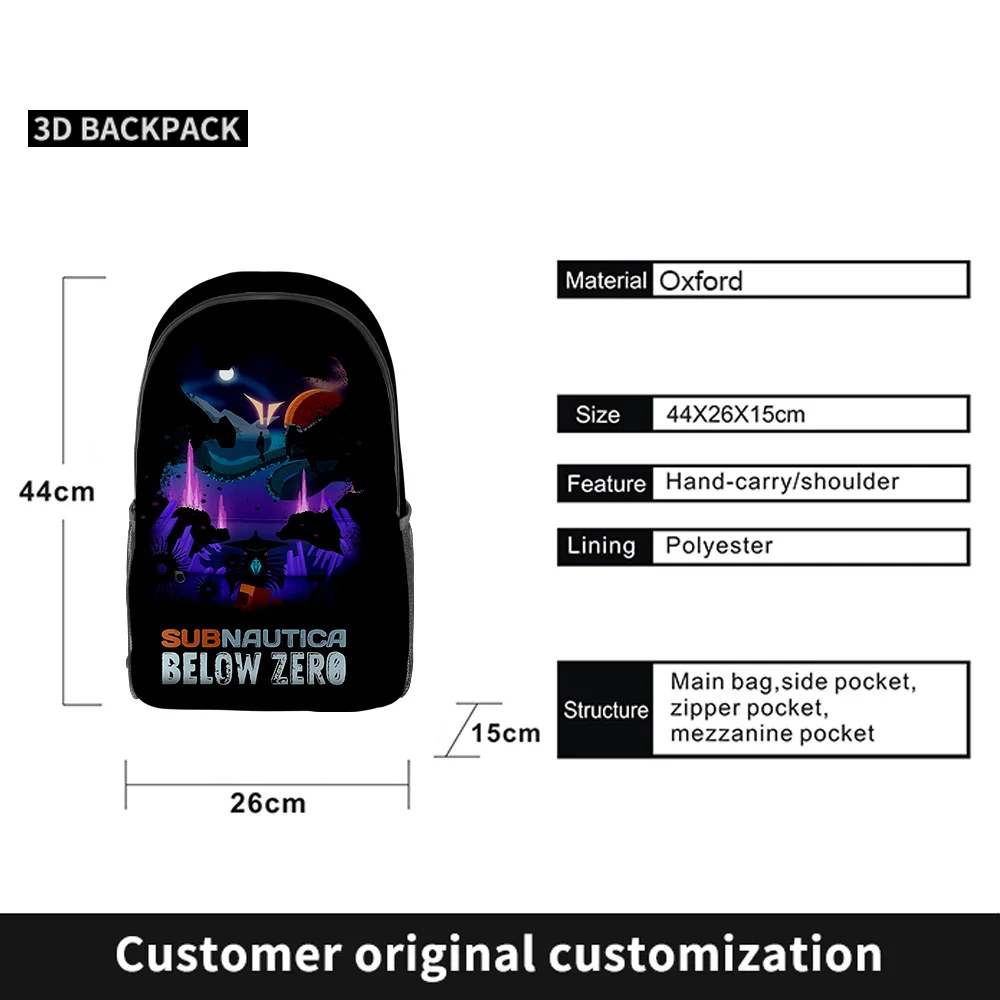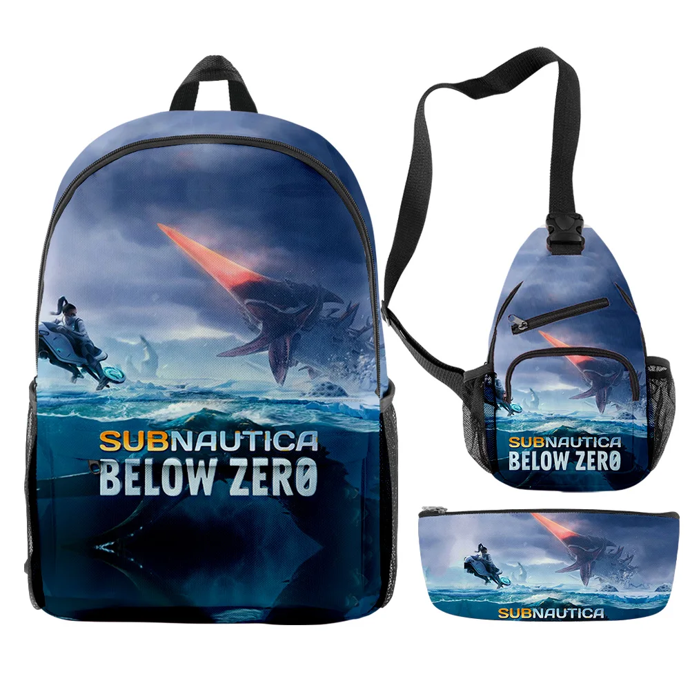 Сумка на плечо Subnautica ниже нуля, милый уличный дорожный ранец, Студенческая школьная сумка из трех предметов