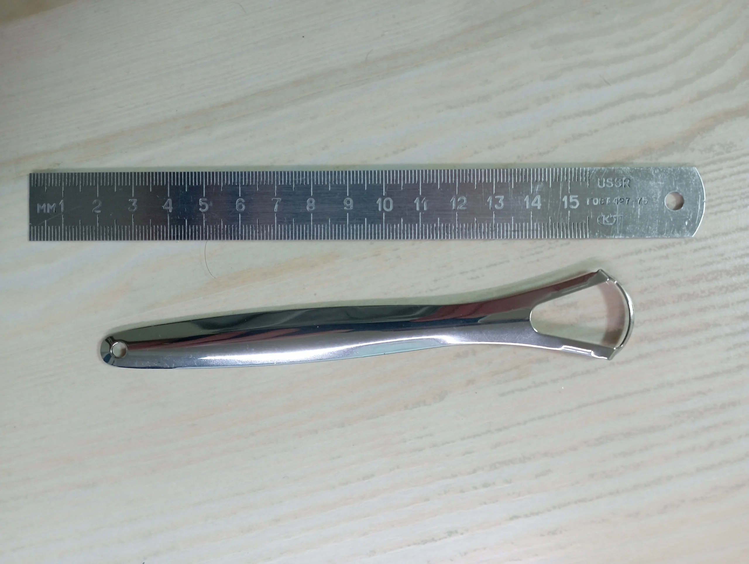 Отличный скребок. Край ровный и гладкий. Брала у другого продавца, там плохо обработанный край и царапает даже руку, а здесь без нареканий!