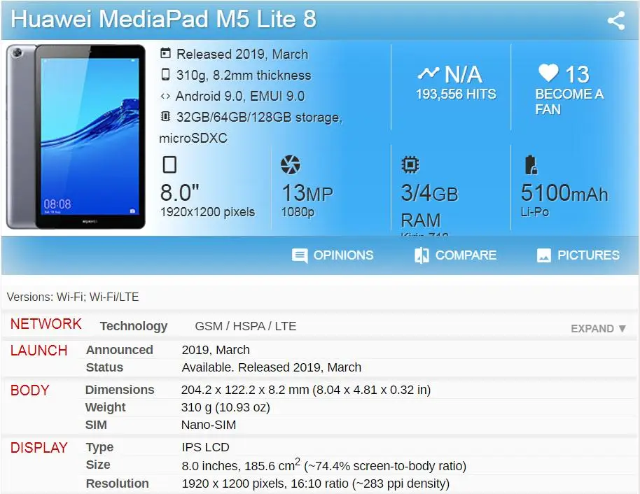 Номер моделиHuawei MediaPad M5 Lite 8.0 2019