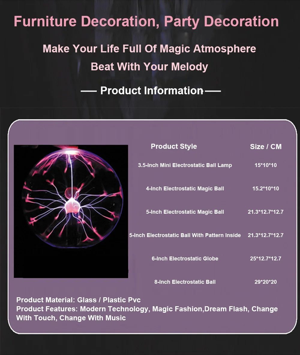 USB электростатический шарик с голосовым управлением плазменный волшебный Ночной светильник с голосовым управлением сенсорный электростатический шарик подарок для детей