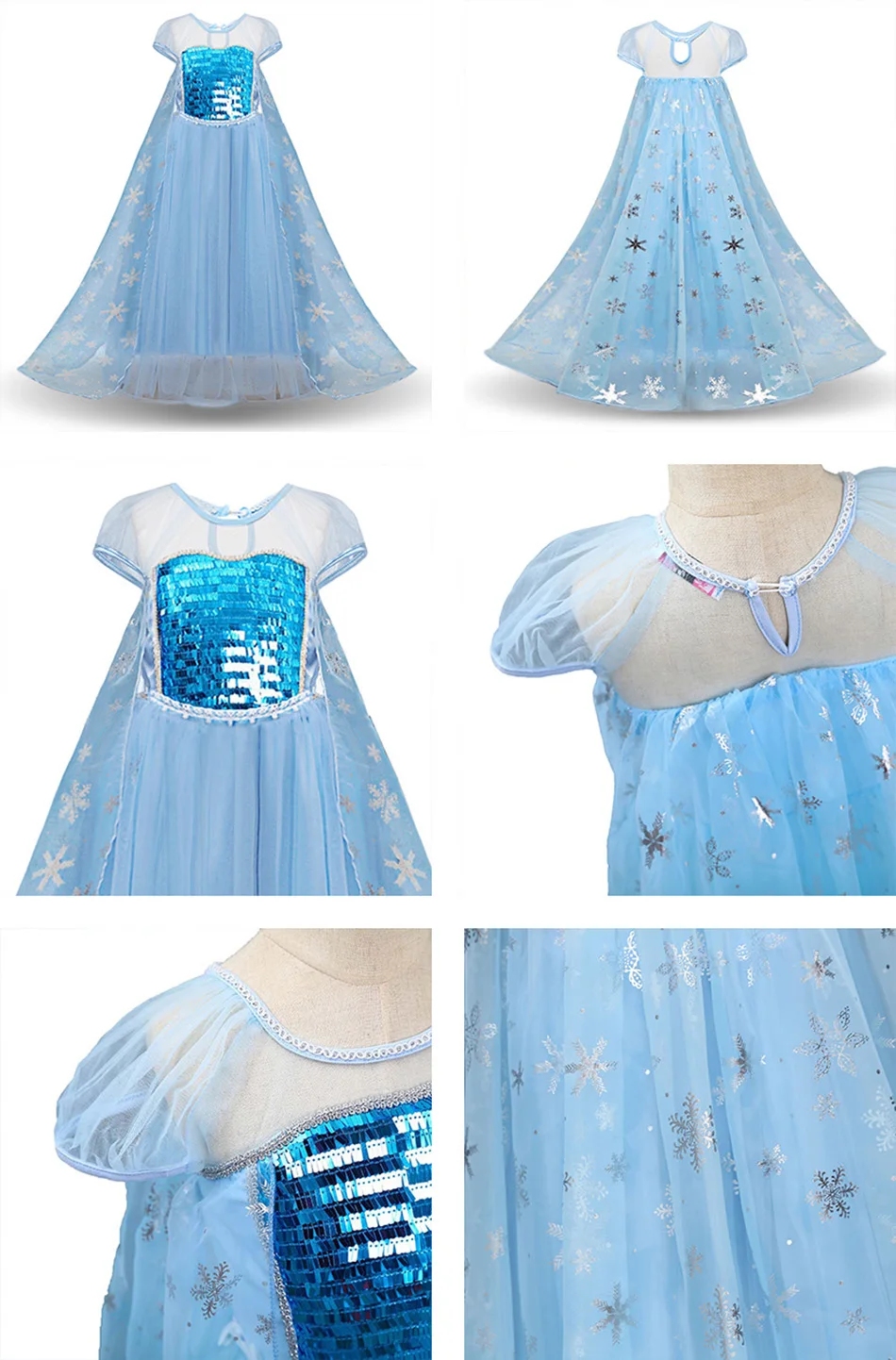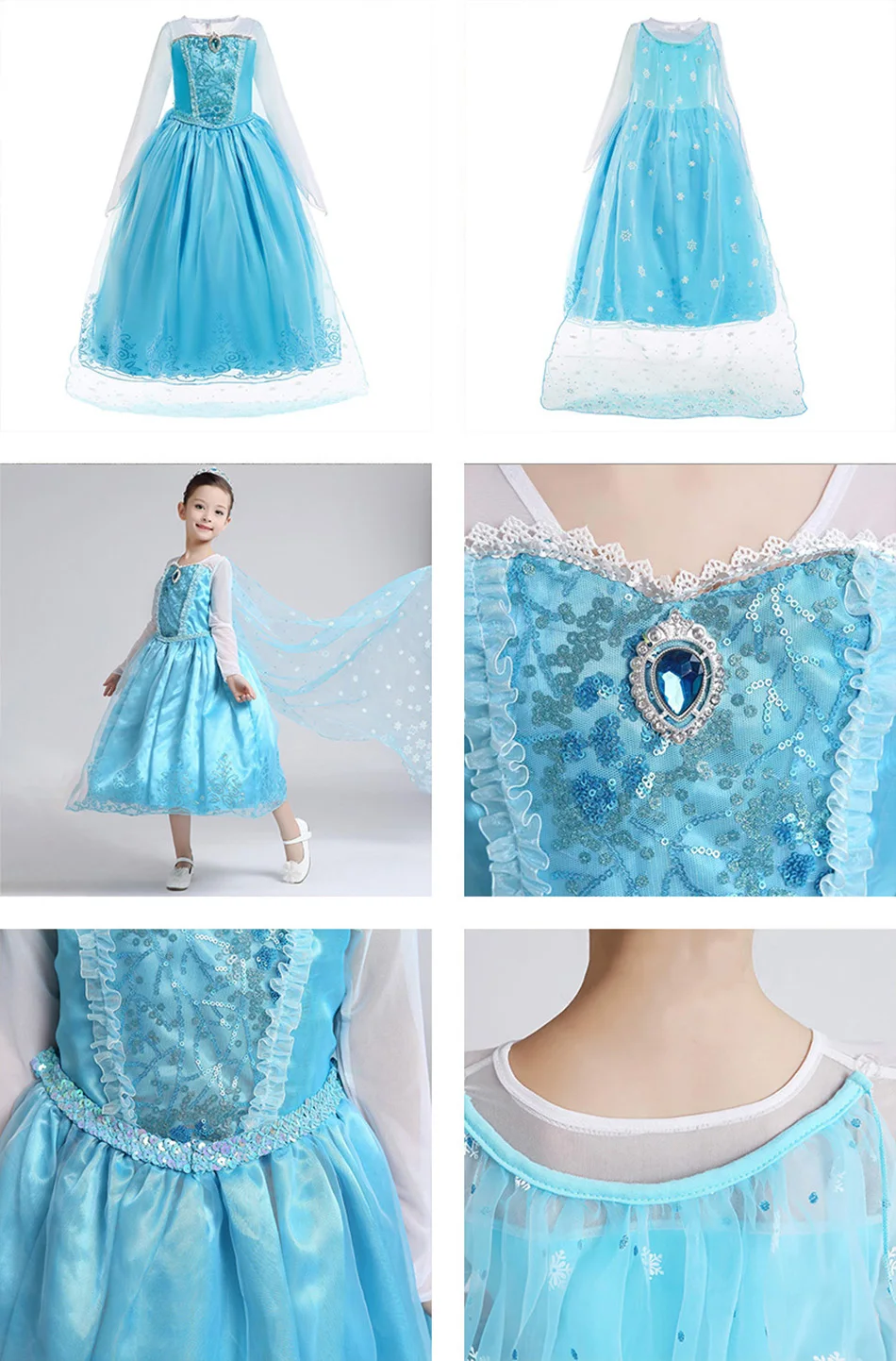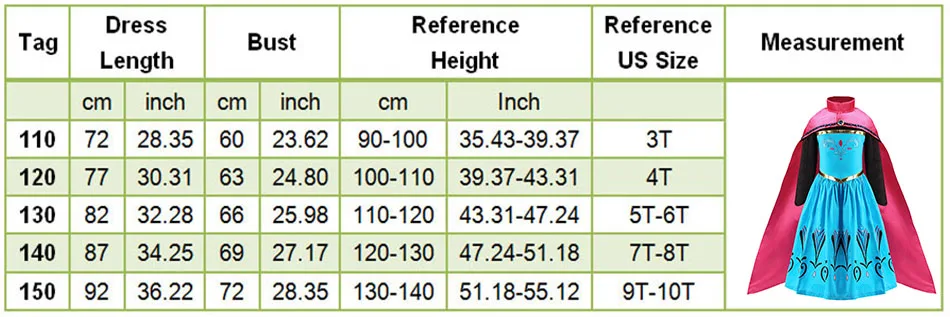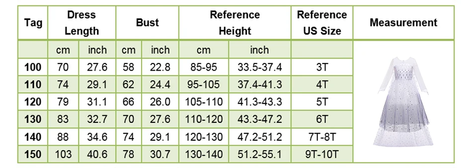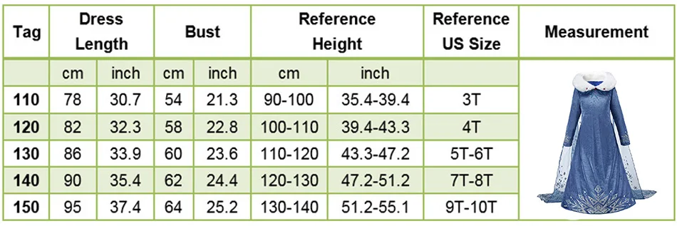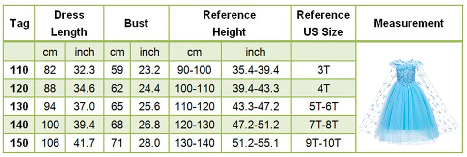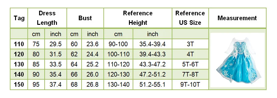 Suggested US SizeGirls Elsa Dress for 3 4 5 6 7 8 9 10 Years Old