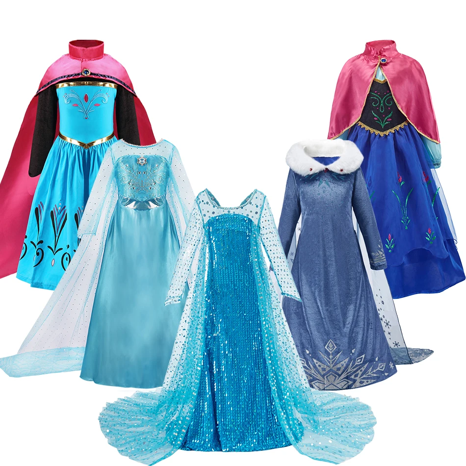 Детский костюм для косплея, платье Анны и Эльзы для девочек, детское платье принцессы Эльзы и Снежной королевы, вечерние чный Рождественский костюм на день рождения для маленьких девочек