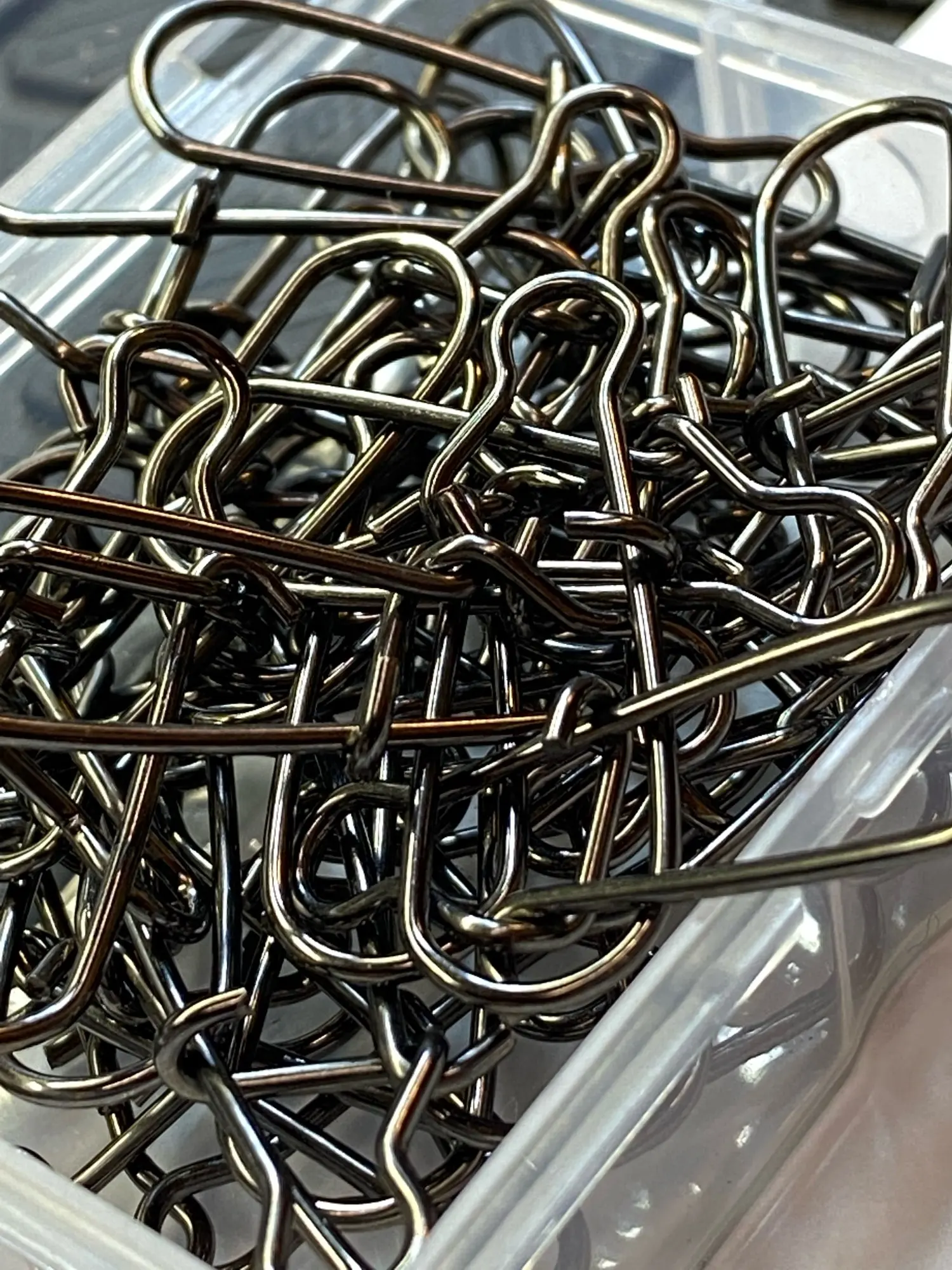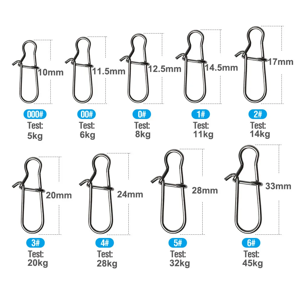 100 или 50 шт. рыболовная защелка из нержавеющей стали с коробкой, защелкой, защелкой, фиксатором, зажим, аксессуары, снасти для барреля, Вертлюг, крючок