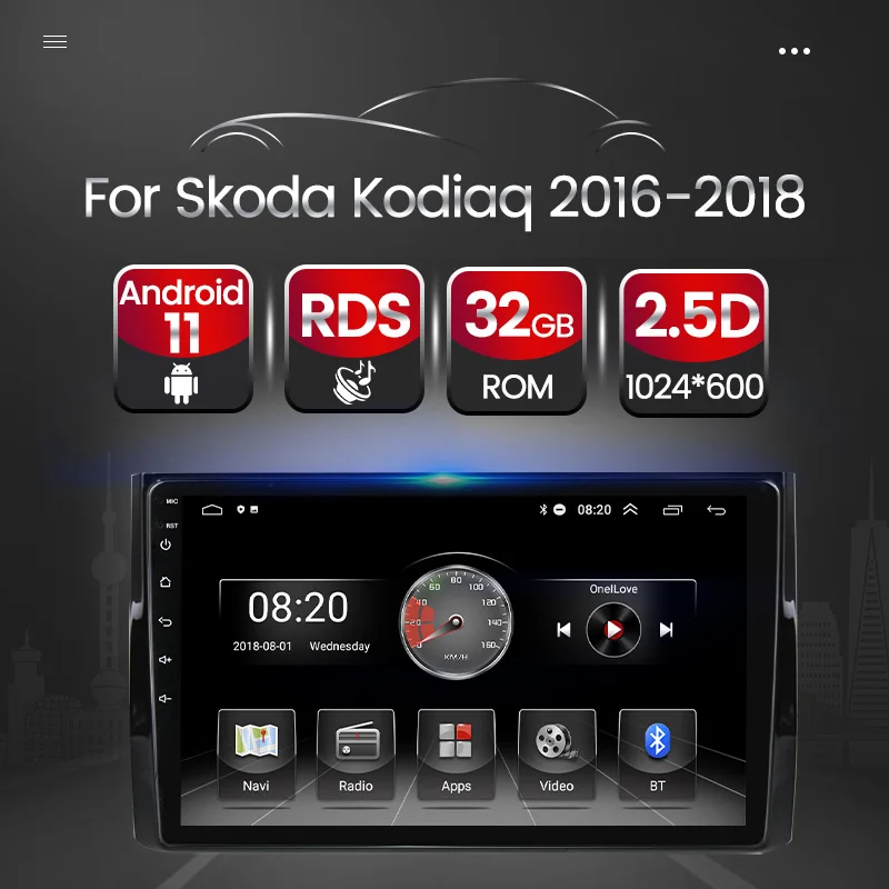 Автомобильный аудиоплеер на Android 11 с GPS-навигацией для Skoda Kodiaq 2016-2017, 2018, RDS, FM, Wi-Fi, головное устройство с видеовыходом, DVR, 2 ГБ + 32 ГБ