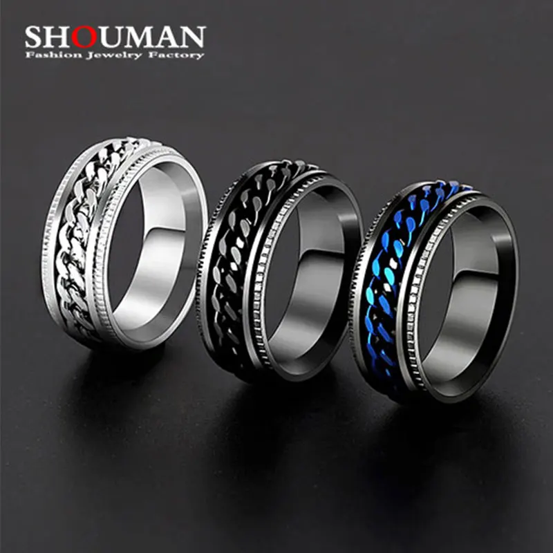 Кольцо SHOUMAN мужское поворотное из нержавеющей стали, модное Ювелирное Украшение в стиле панк, аксессуар для снявечерние давления, 8 мм