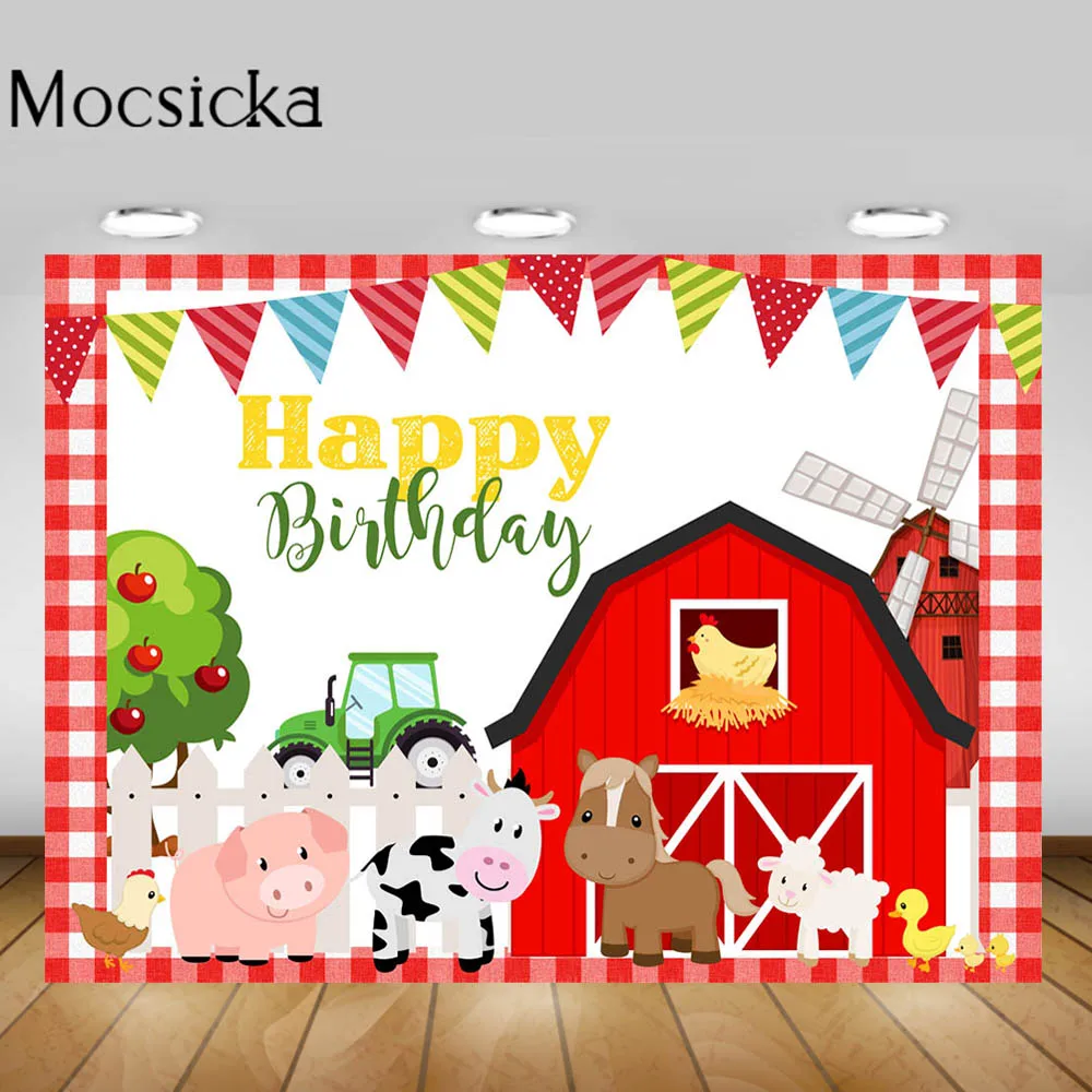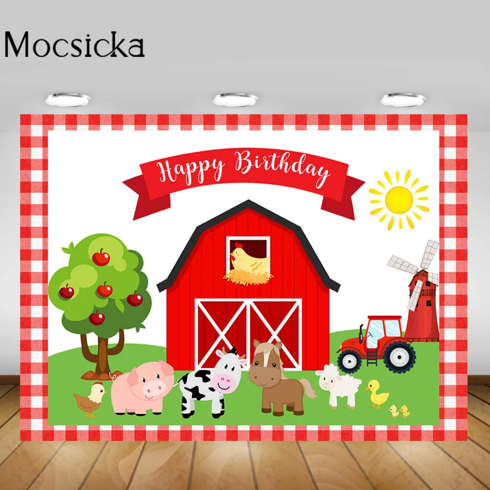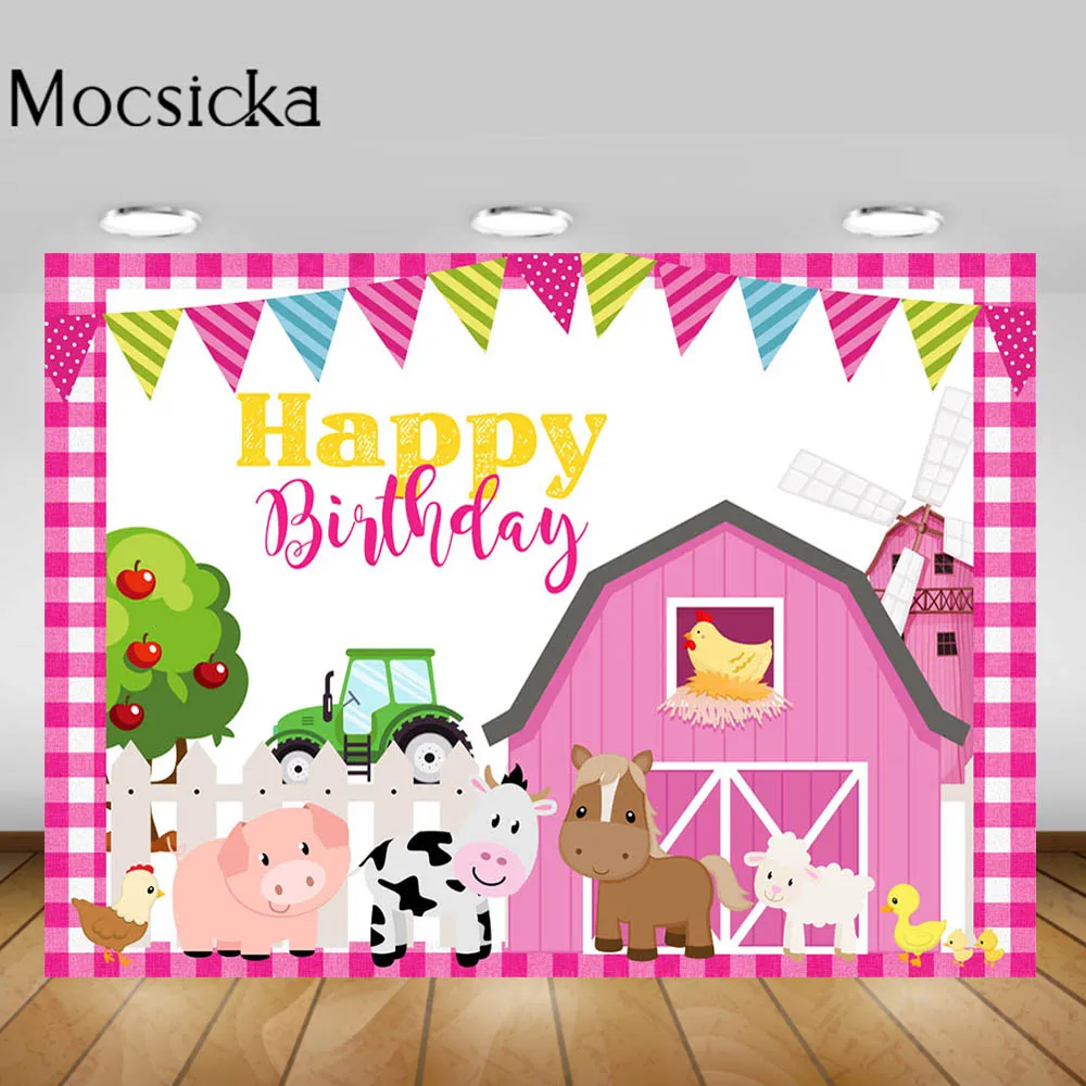 Mocsicka тема фермы детский день рождения фон розовый красный сарай животные День Рождения Вечеринка фото фон фотостудия Декор реквизит
