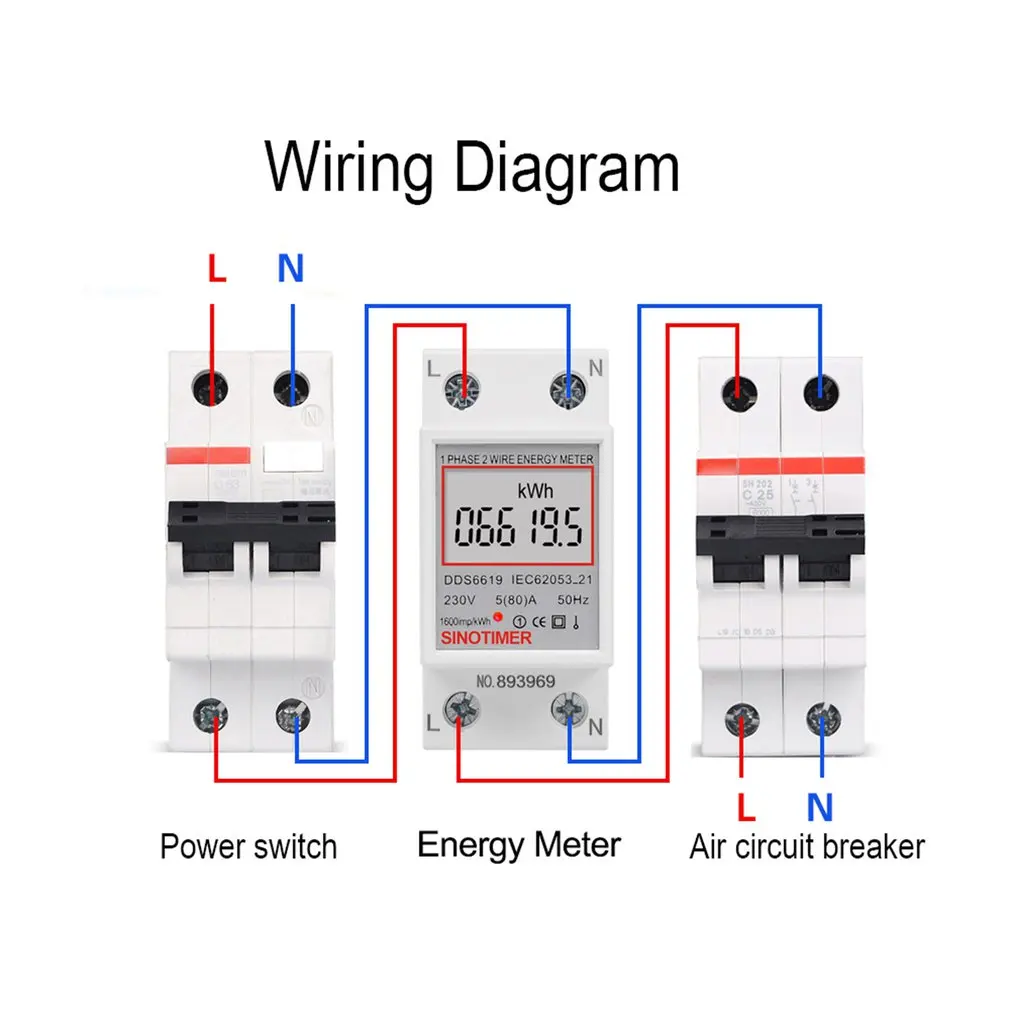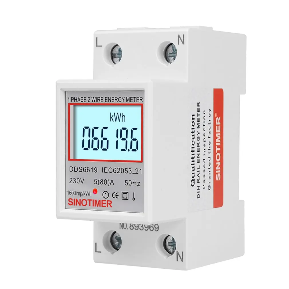 DDS6619-005 измеритель электрической мощности, цифровой двухпроводный однофазный измеритель мощности с ЖК-дисплеем, кВтч, переменный ток 230 В, 50 Гц, Din-рейка