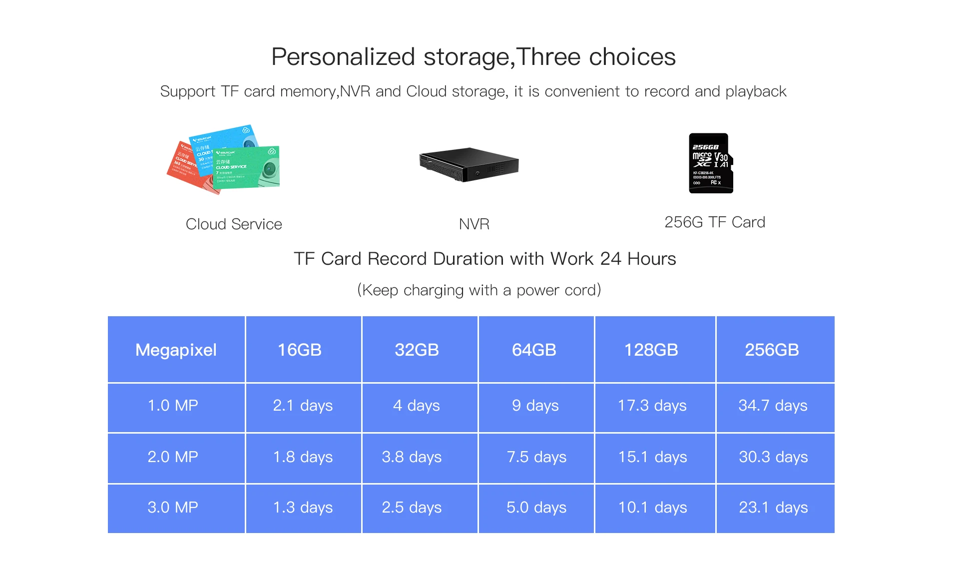 [Cloud Service & Max 128G TF card storage ] -Поддержка карт TF max 128G (карта не входит в комплект).