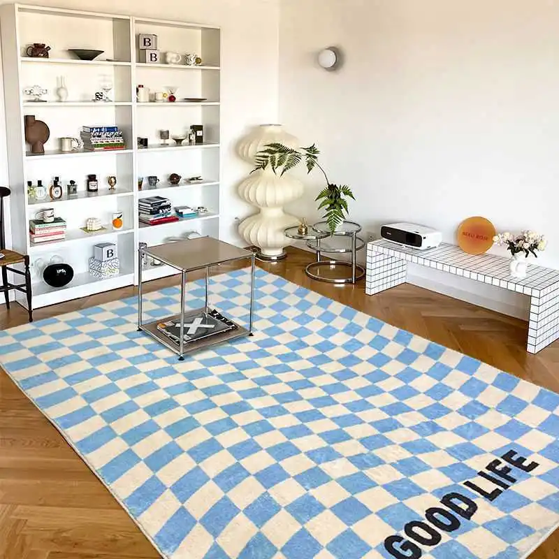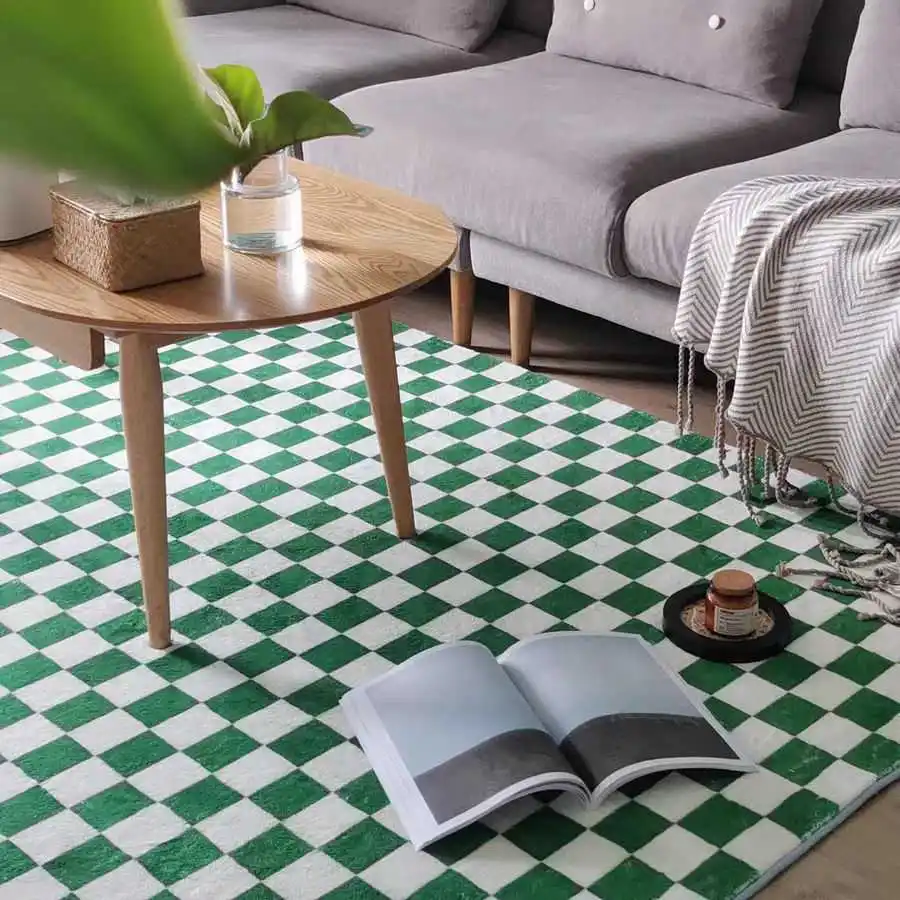 Ковер в стиле ретро в зеленую клетку, Марокканский Декоративный ковер для гостиной, спальни, простой ковер для журнального столика в скандинавском стиле