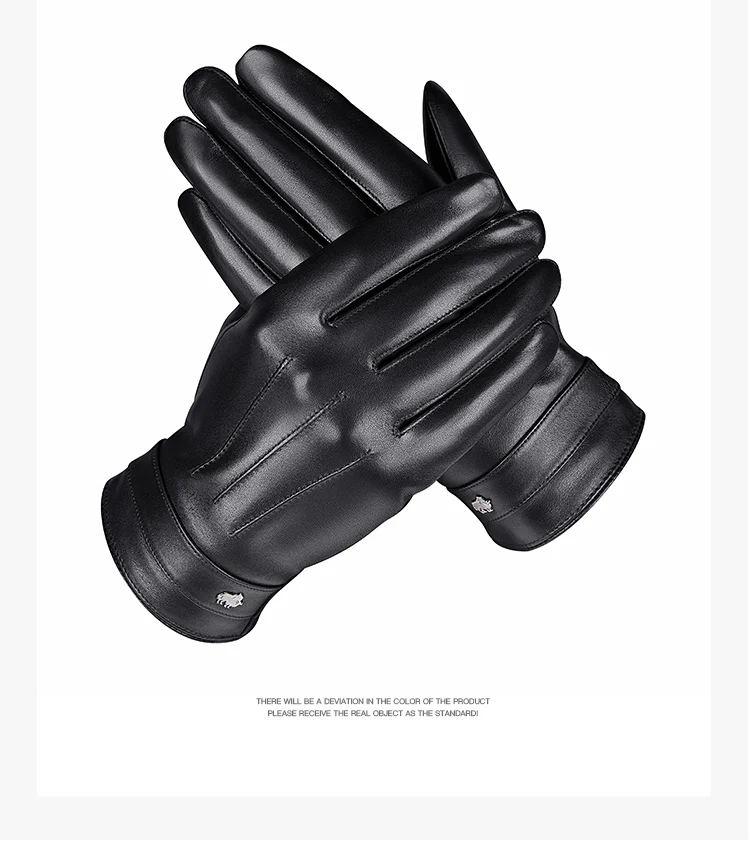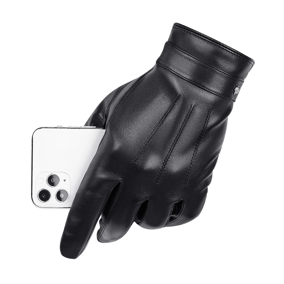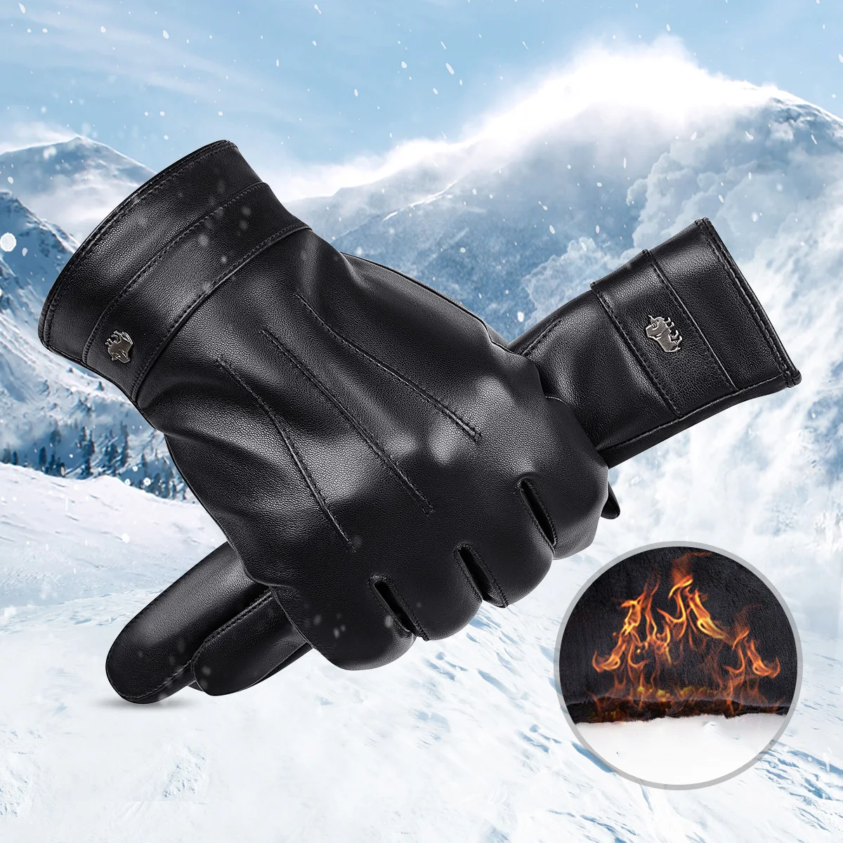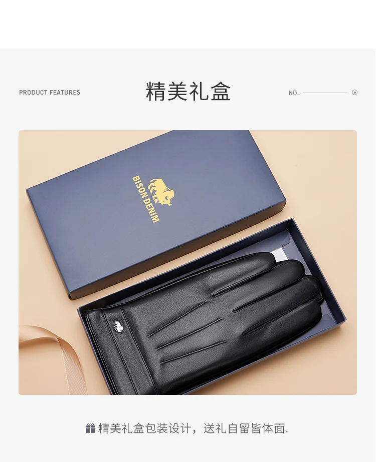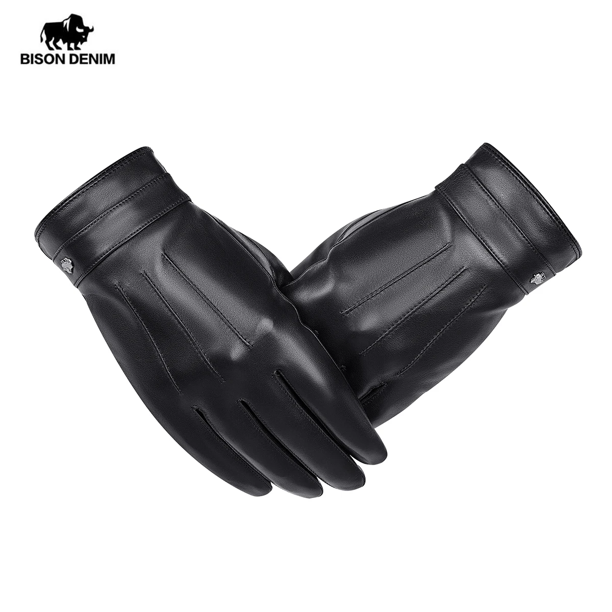 Мужские перчатки из натуральной овечьей кожи BISON DENIM, черные варежки с теплым сенсорным экраном, ветрозащитные мужские перчатки из овечьей кожи на осень и зиму