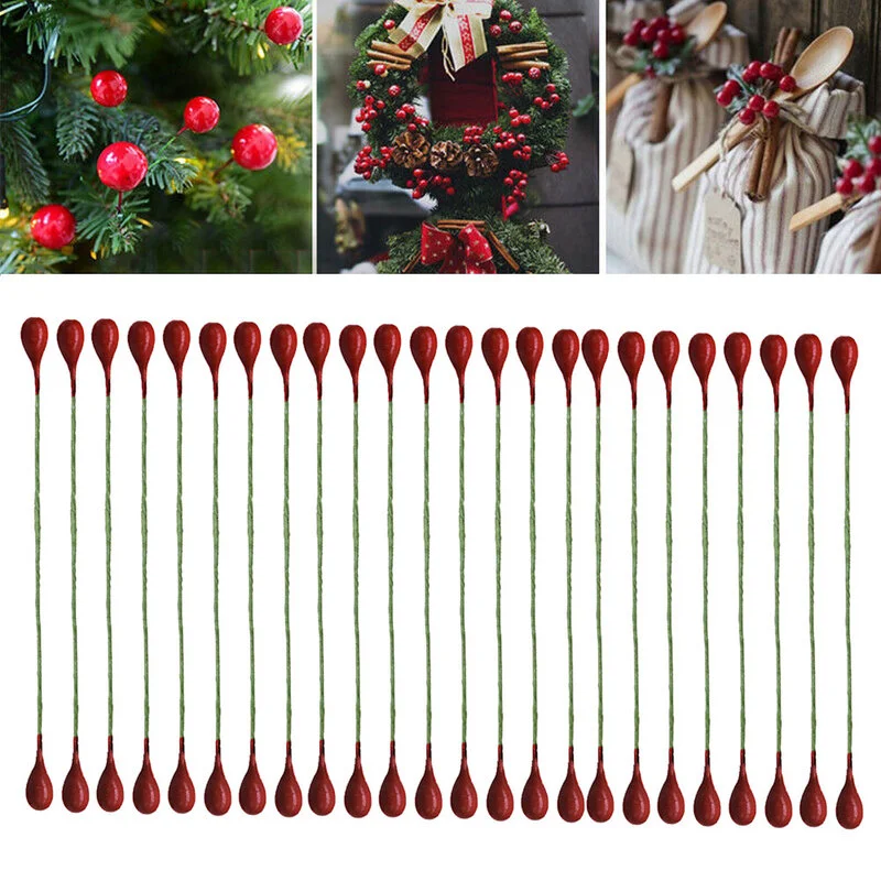 Рождественские искусственные ягоды, красная вишня с тычинками, Мини искусственные цветы, Подарочная коробка сделай сам, венок, украшенный искусственным цветом 6 мм