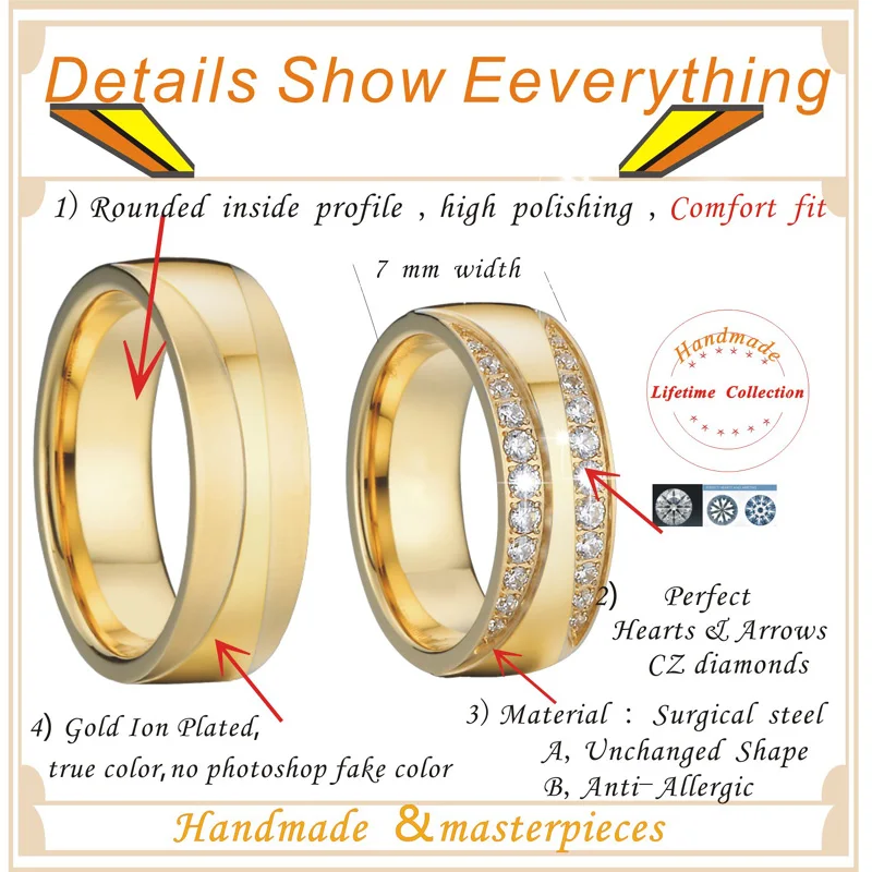 Под заказ 18k с позолотой пара обручальные кольца для мужчин и женщ...