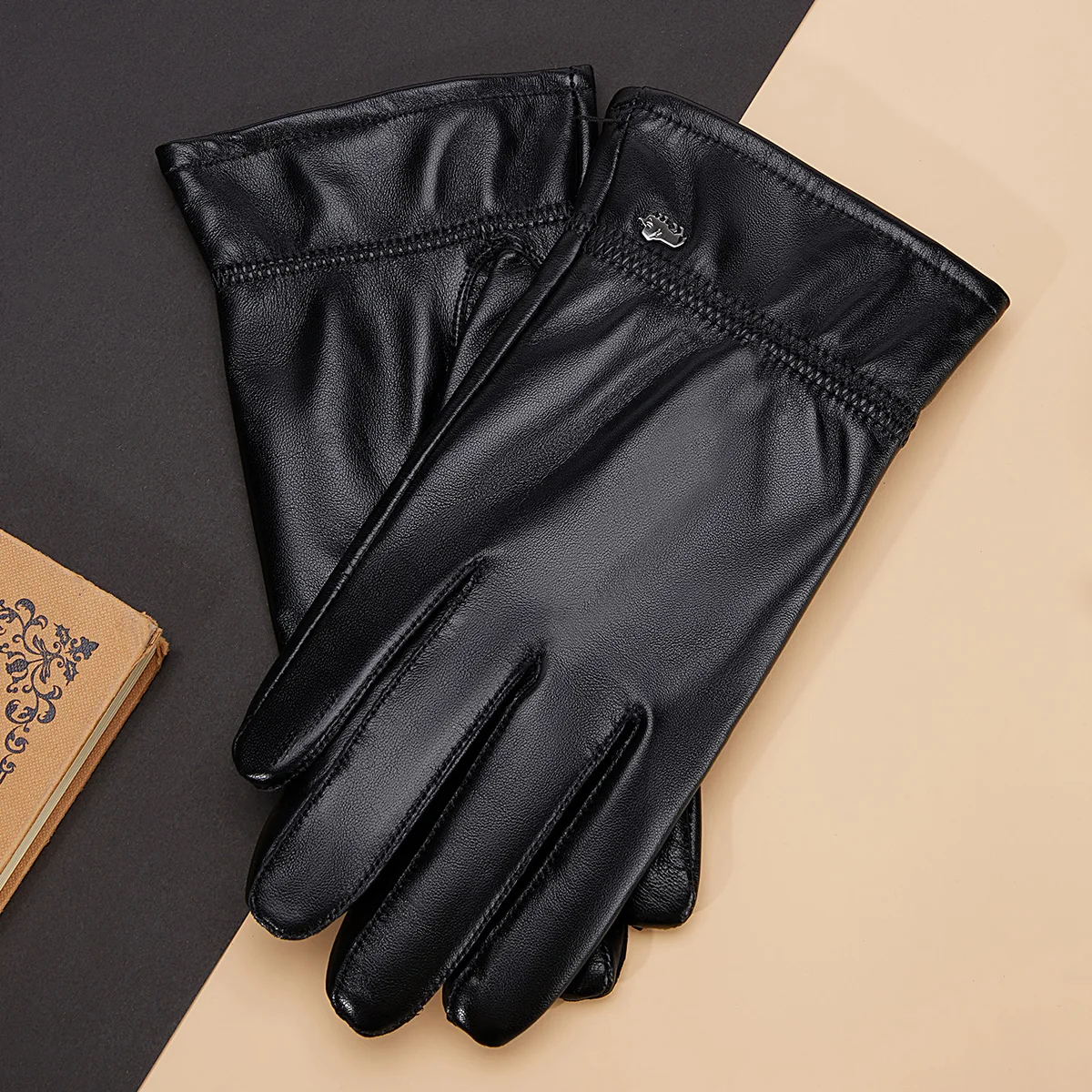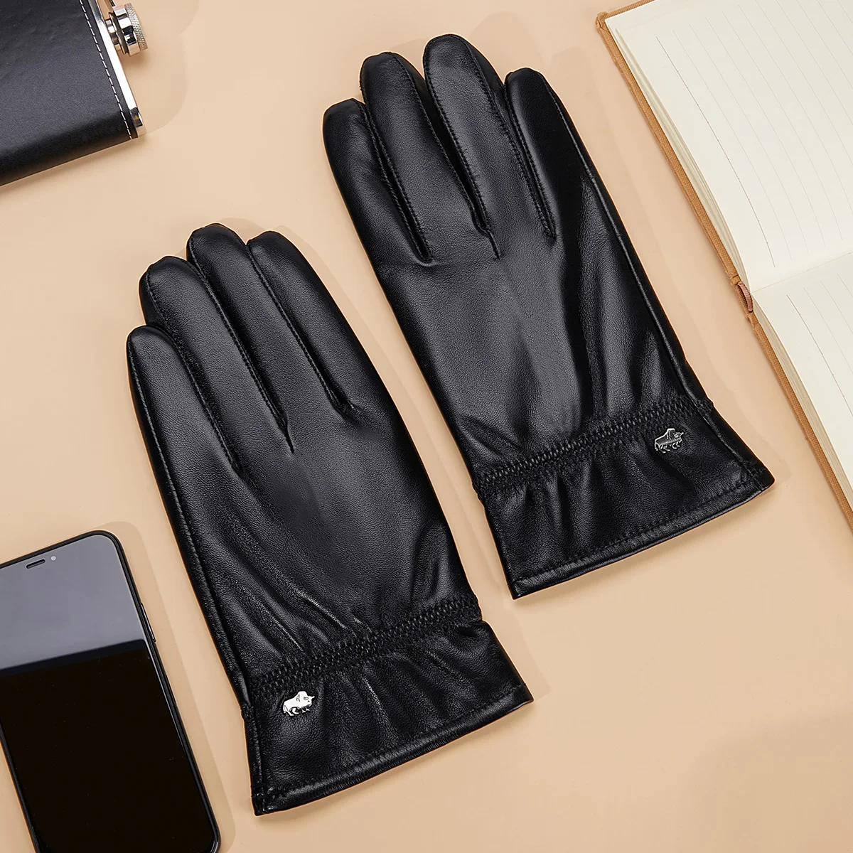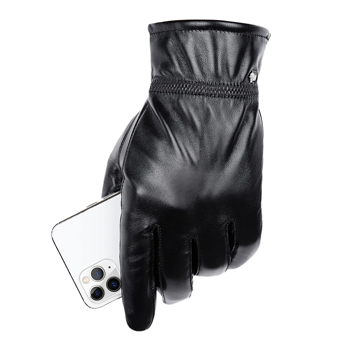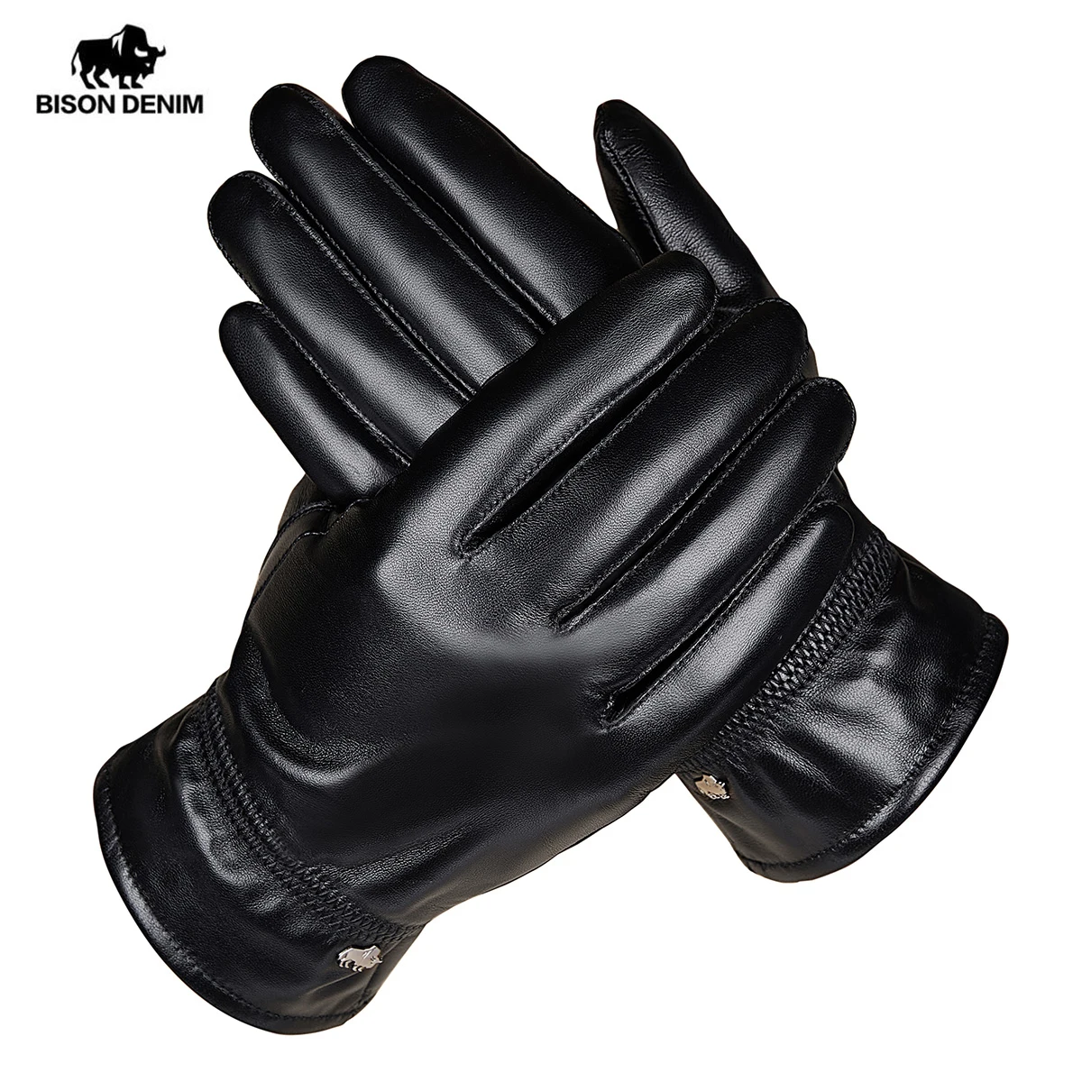 Мужские перчатки из овечьей кожи BISON DENIM, зимние теплые модные перчатки из натуральной кожи для вождения, кожаные перчатки для сенсорного экрана, Guantes