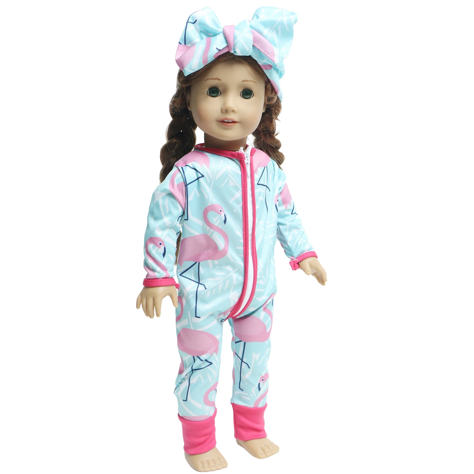 Пижама в виде розовой птицы, штаны, пальто, повязка на голову, наряд для американской куклы, 18 дюймов, 43 см, одежда для куклы, аксессуары для детской игрушки, подарок