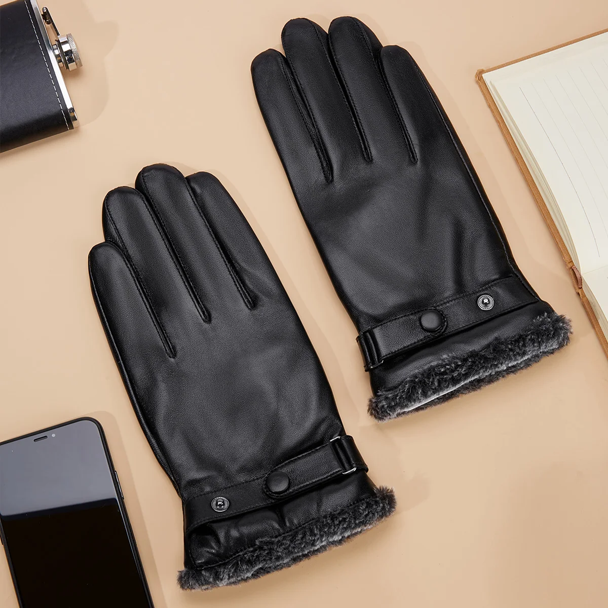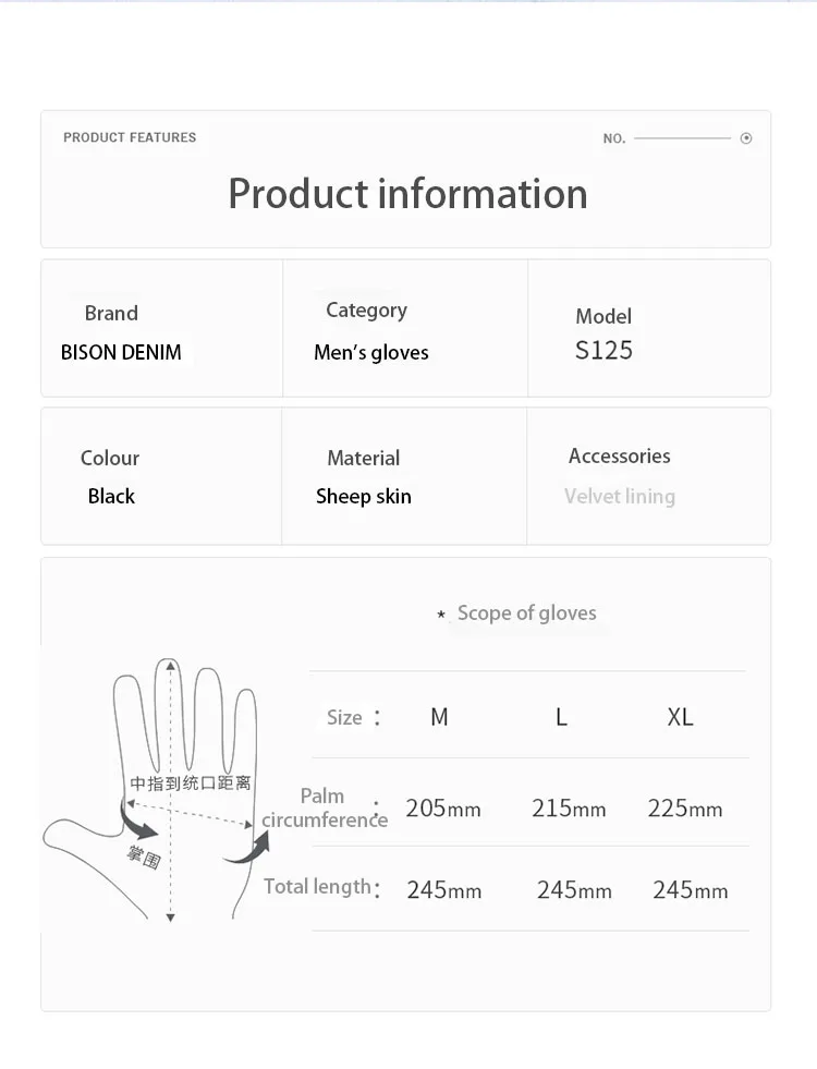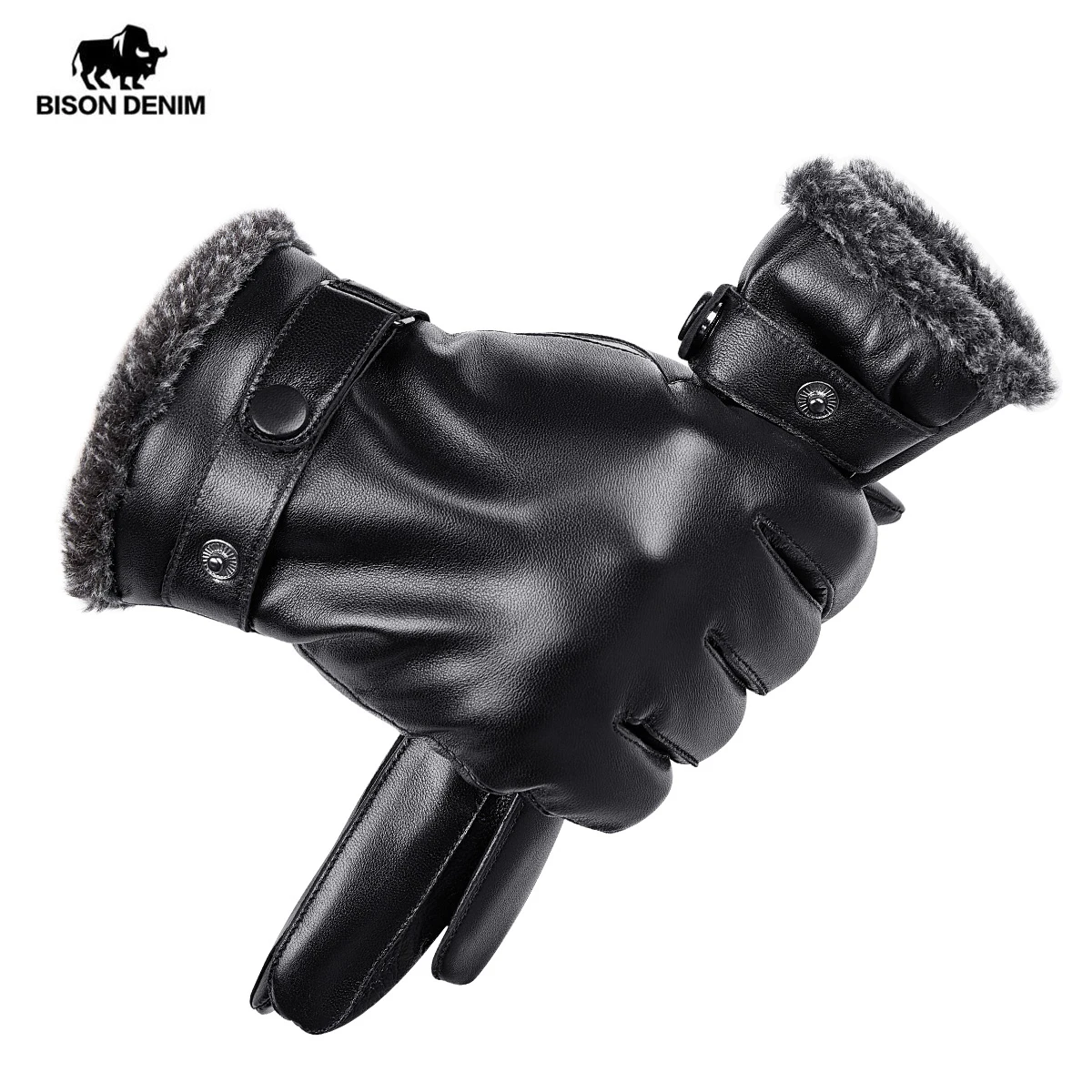 Мужские перчатки из натуральной кожи BISON DENIM, зимние классические перчатки из натуральной овечьей кожи, мягкие мужские перчатки для улицы с сенсорным экраном