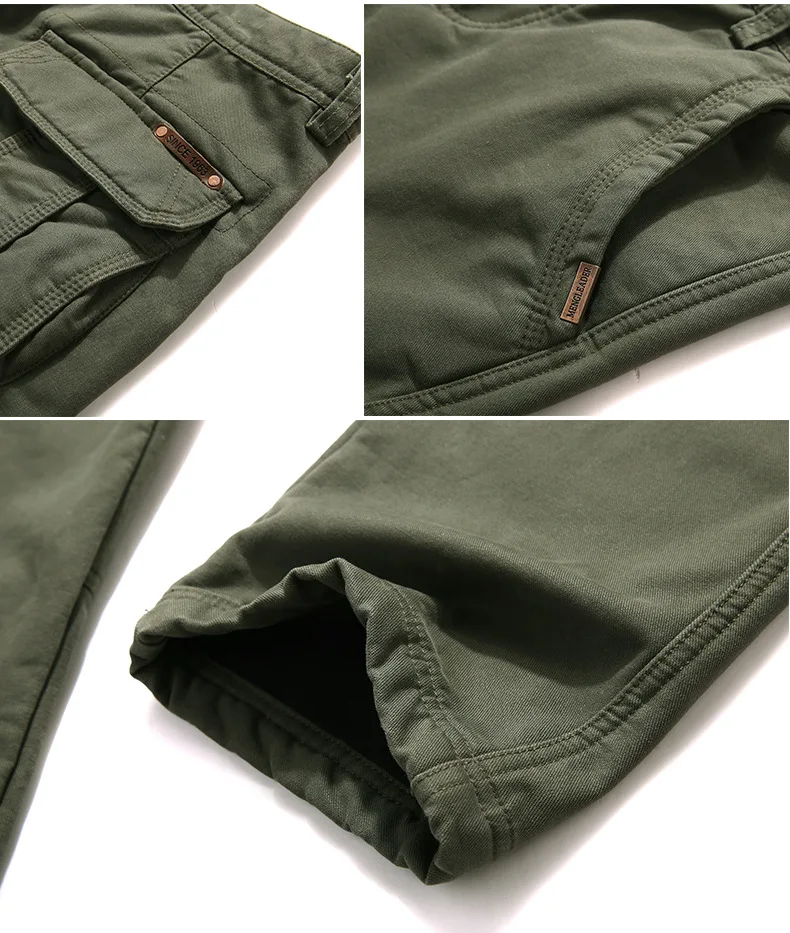 Мужские зимние плотные флисовые повседневные брюки, военные тактические мешковатые брюки-карго, двухслойные бархатные теплые брюки из чистого хлопка