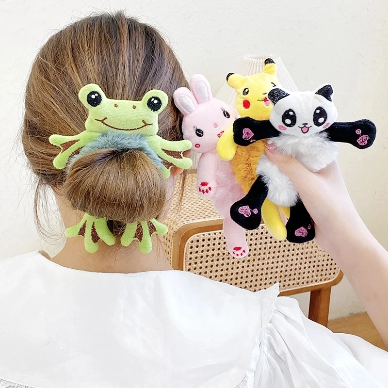 Резинка для волос женская, плюшевая, с медведем и кроликом, декорат...