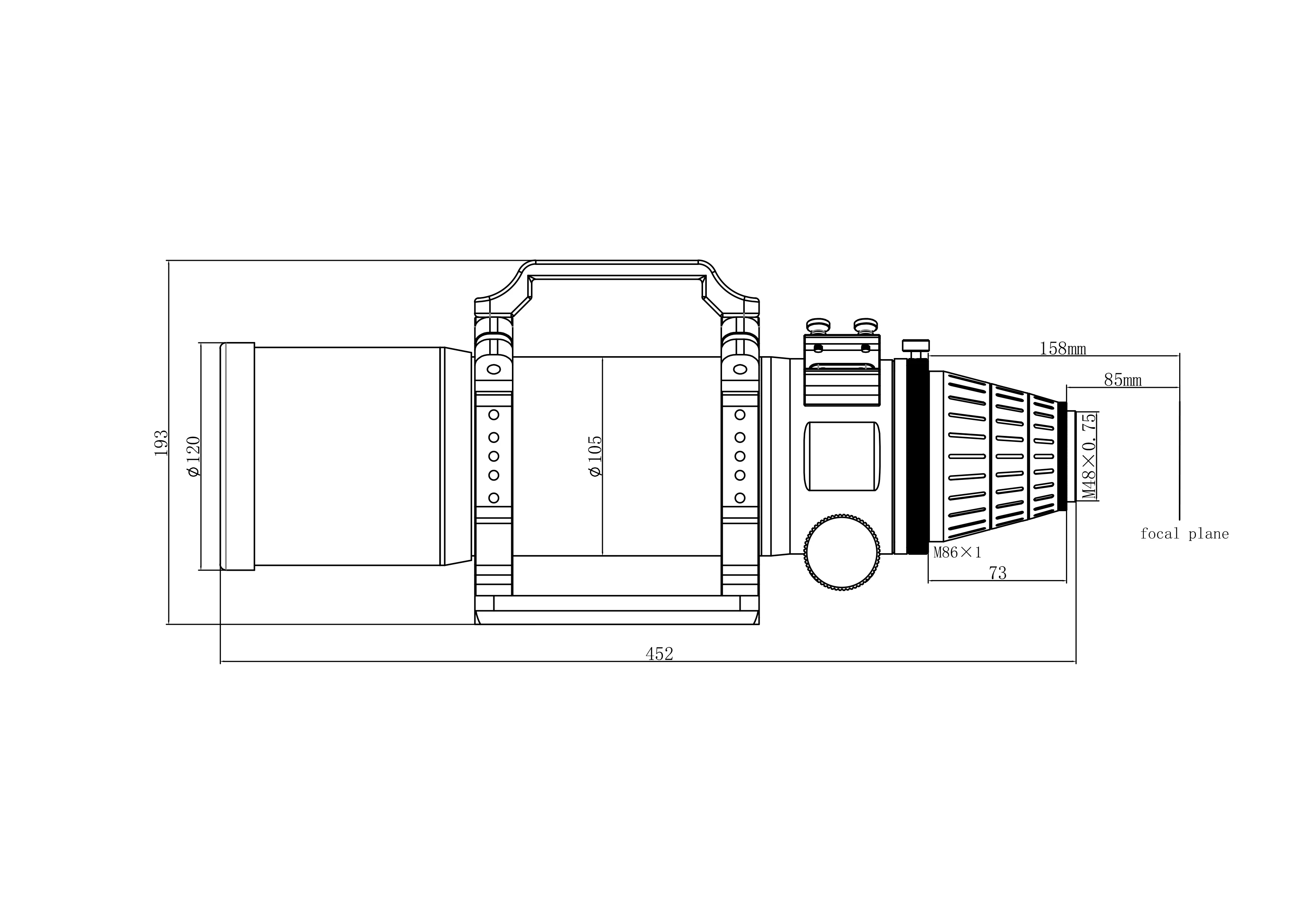 Размер диафрагмы: 90 ммФокусное расстояние: 500 ммФокусное соотношение: f/5,6Объективы: Quintuplet air-spaced APO (включая два стекла ED)Круг изображения: 55 ммБэк-фокус: 158 мм (от основания M48 × 0,75 резьбы на конической расширитель для фокальный)85 мм (от основания M86 × 1 резьбы на ротаторе до фокальной плоскости)Общая длина: 452 мм (410 мм, когда защита росы сокращается)Вес нетто: 4,1 кгВес брутто: 5,2 кгТип задней резьбы: M86 × 1Конический адаптер: M48 × 0,75Посылка: FRA500 OTA, пара трубчатые кольца, ручка, Askar Losmandy dovetail plate, конический удлинитель, руководство