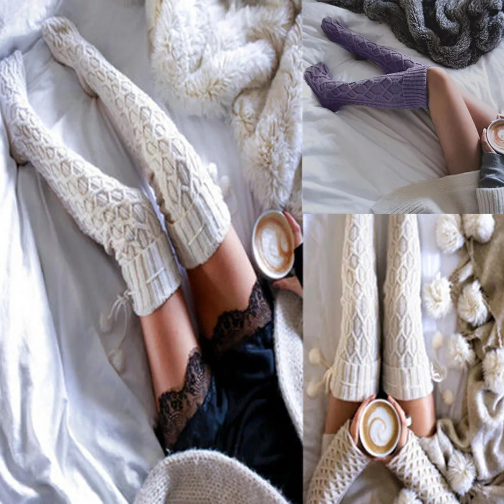 Лидер продаж, чулки, женские вязаные хлопковые чулки с длинными сапогами, выше колена, чулки до бедра для девочек, женские чулки