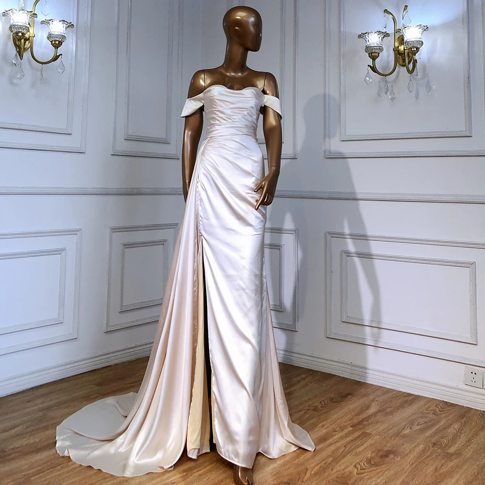 Serene Hill оранжевые Простые Вечерние платья русалки с высоким разрезом 2021 атласные элегантные сексуальные для женщин вечерние платья CLA71422