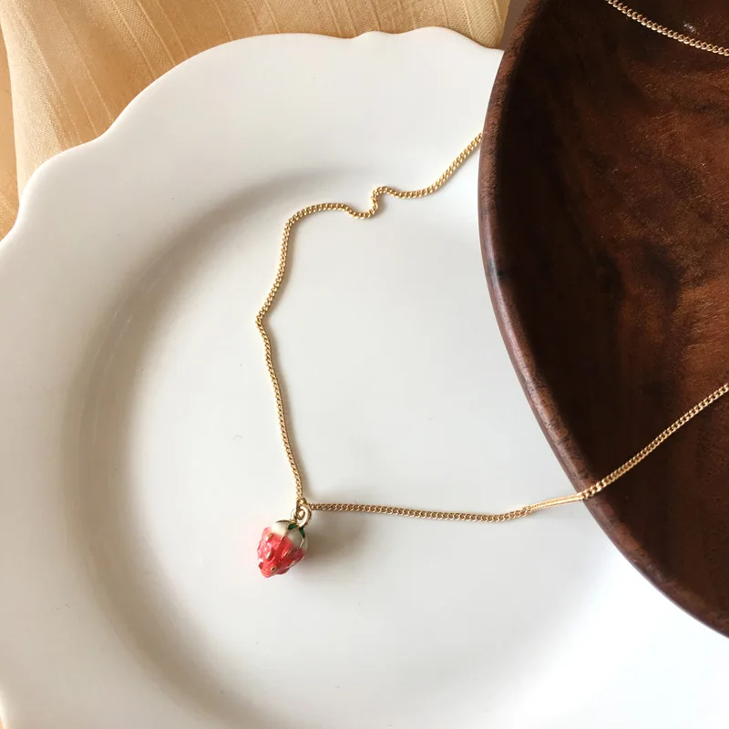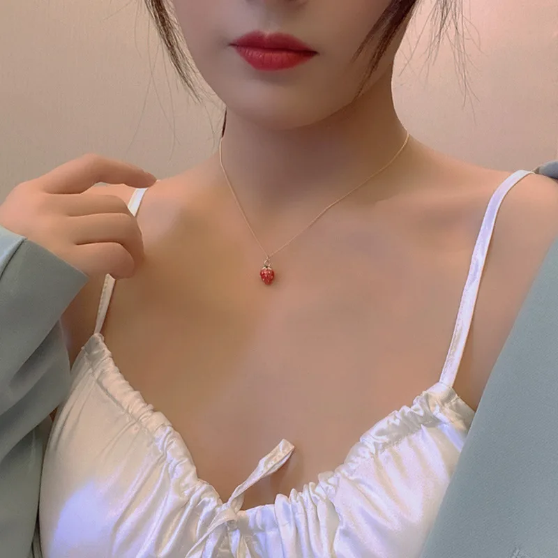 Милое ожерелье с подвеской для женщин с клубникой, новая модная Корейская Милая капля фруктов, цепочка до ключицы, ювелирные изделия для девочек на день рождения, подарки