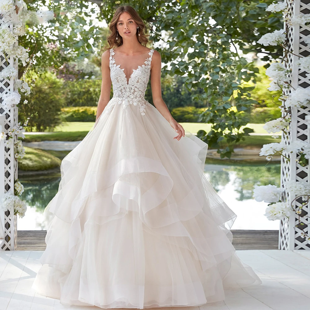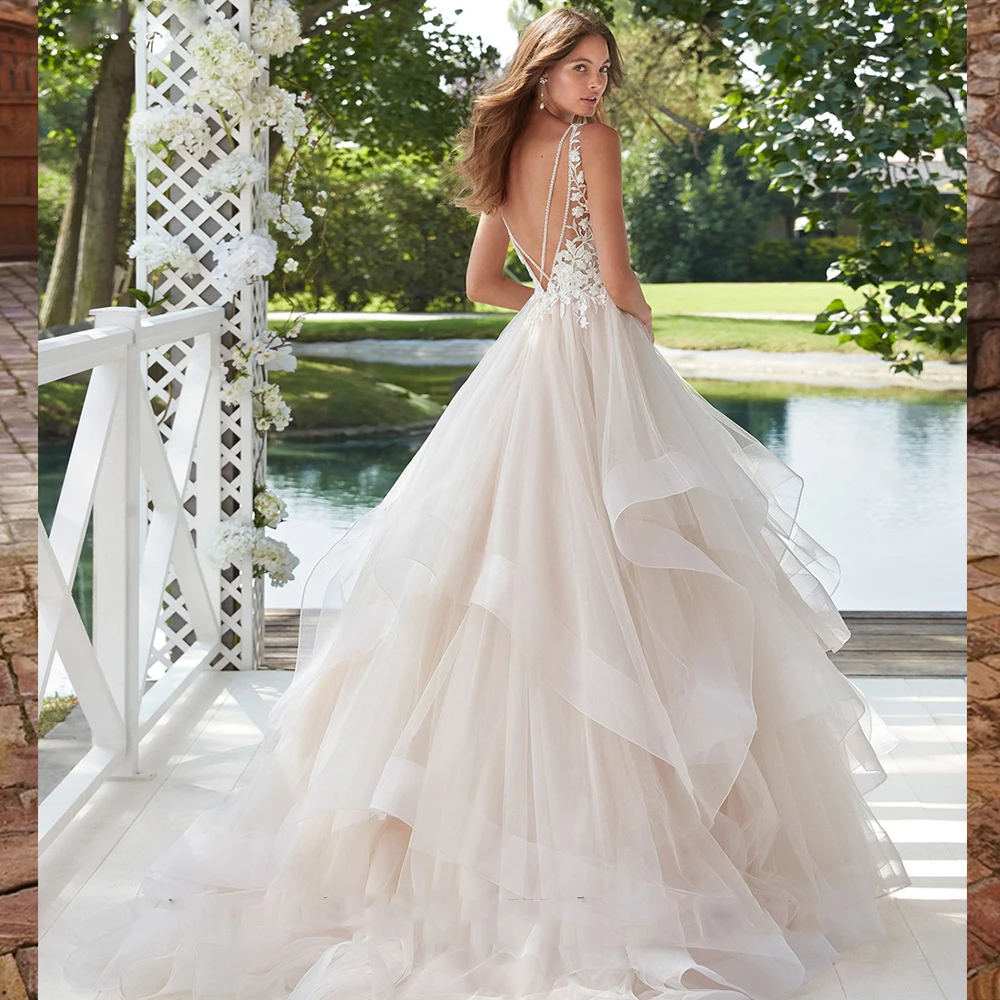 Женское ТРАПЕЦИЕВИДНОЕ свадебное платье принцессы, кружевное платье невесты без рукавов, Привлекательное платье с V-образным вырезом и открытой спиной в несколько рядов, 2022