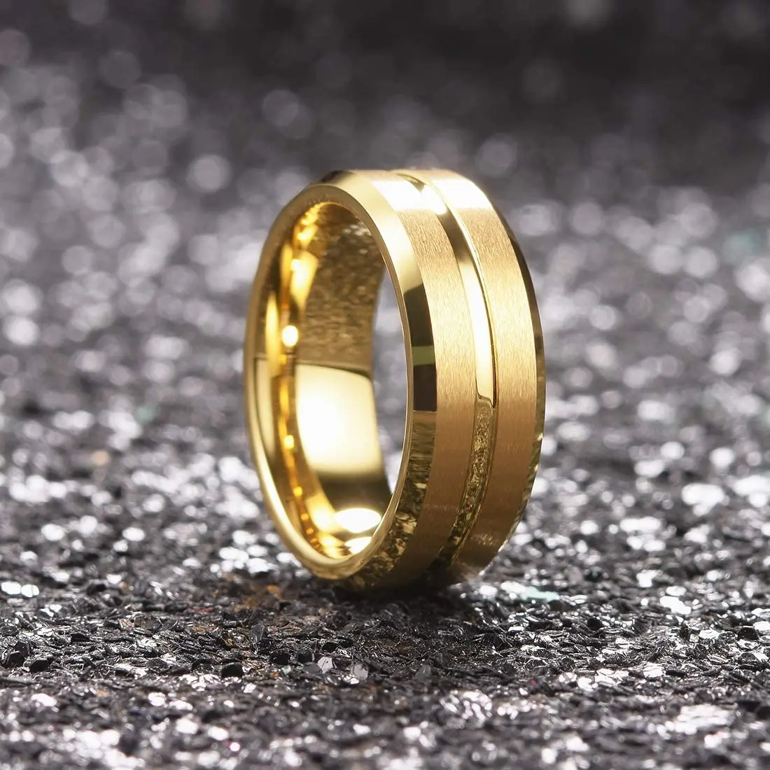 Rings Style 11Men's Gold Groove Beveled Edge Tungsten Carbide Ring