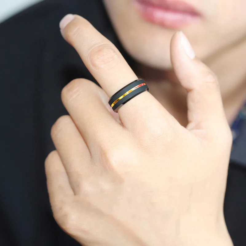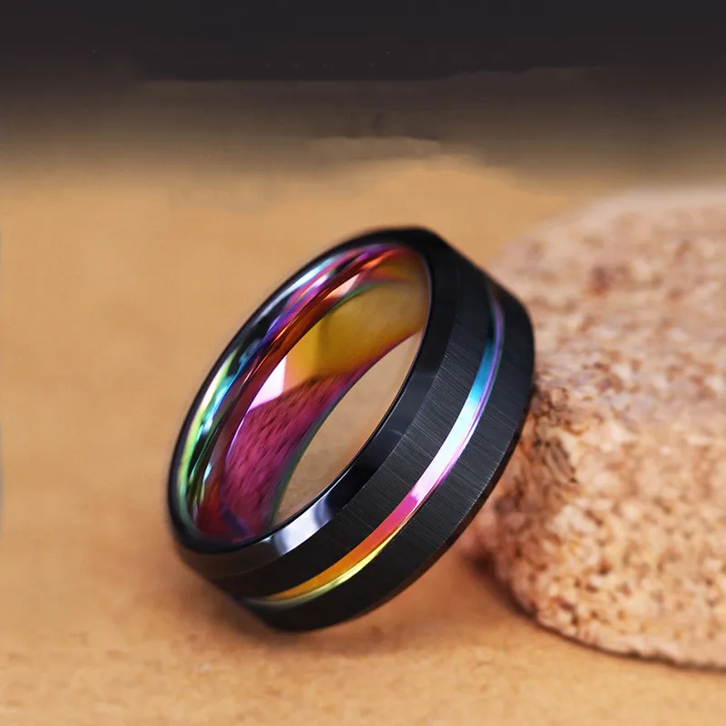 Мужские классические обручальные кольца 8 мм черного и серебристого цвета, синие радужные кольца со скошенным краем, обручальные кольца из нержавеющей стали для мужчин