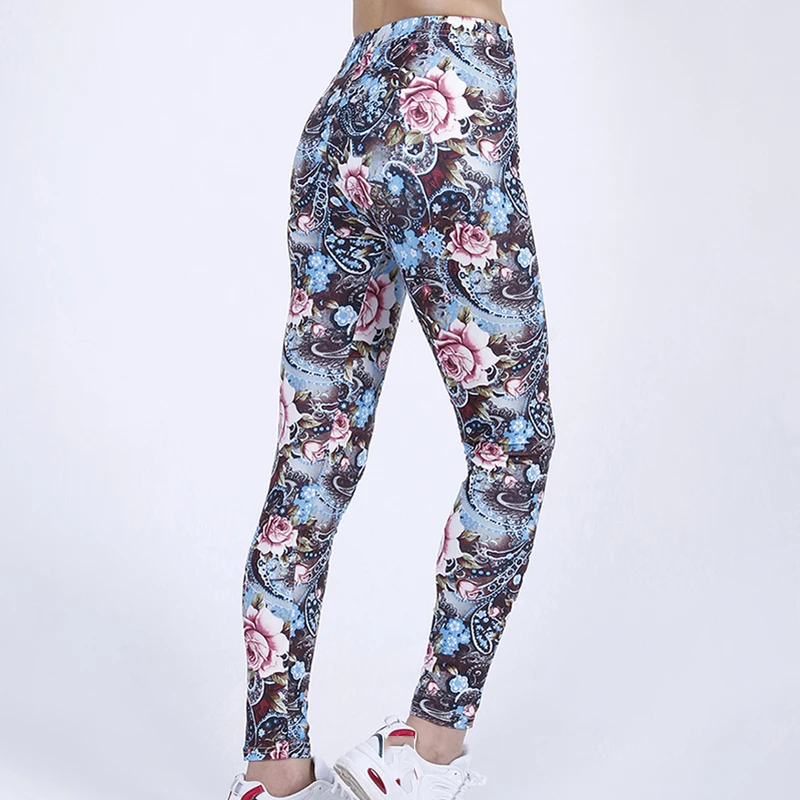 Женские эластичные штаны для фитнеса VIIANLES, модные леггинсы из спандекса с цветочным принтом, тренировочные брюки, Классические повседневные штаны из полиэстера