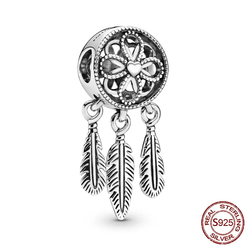 100% Стерлинговое Серебро 925 дюйма, Искусственная любовь, Ловец снов, очаровательные бусины, подходят для оригинального браслета Пандоры, ожерелье, серебряные украшения