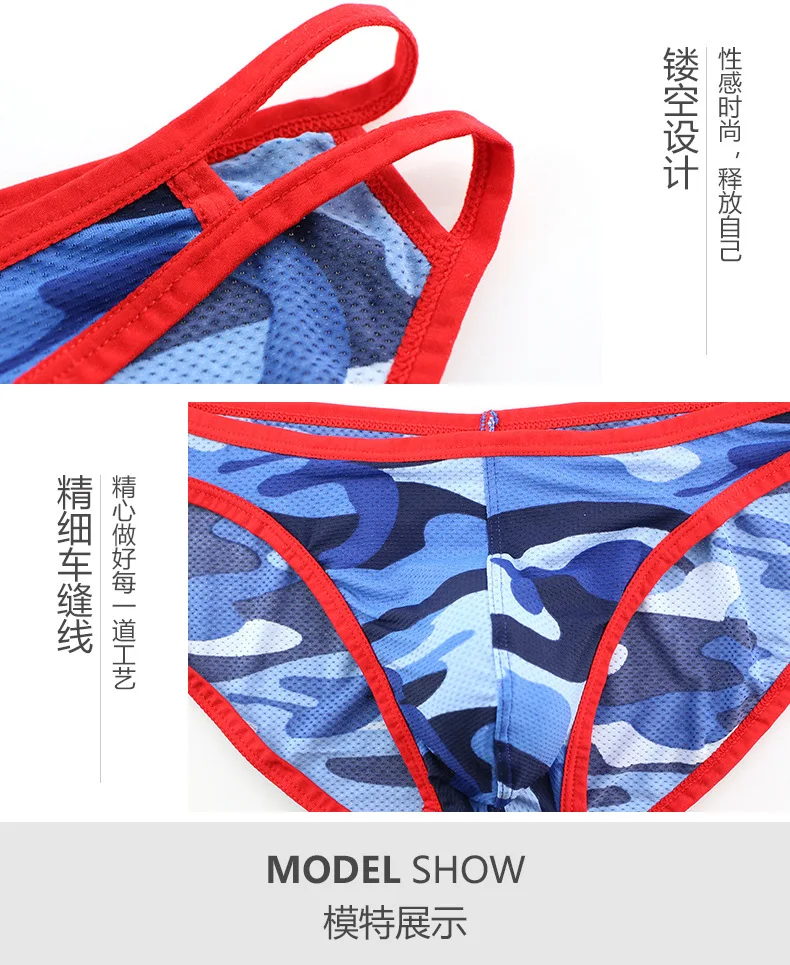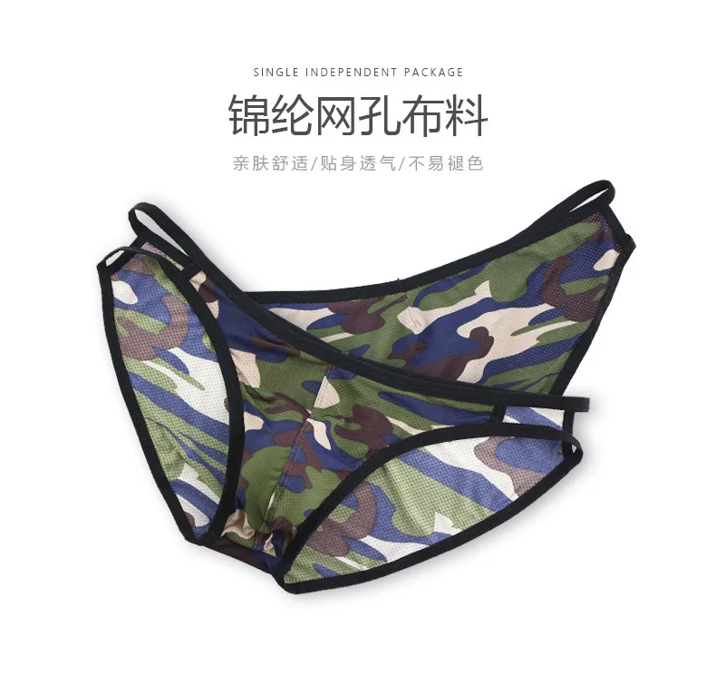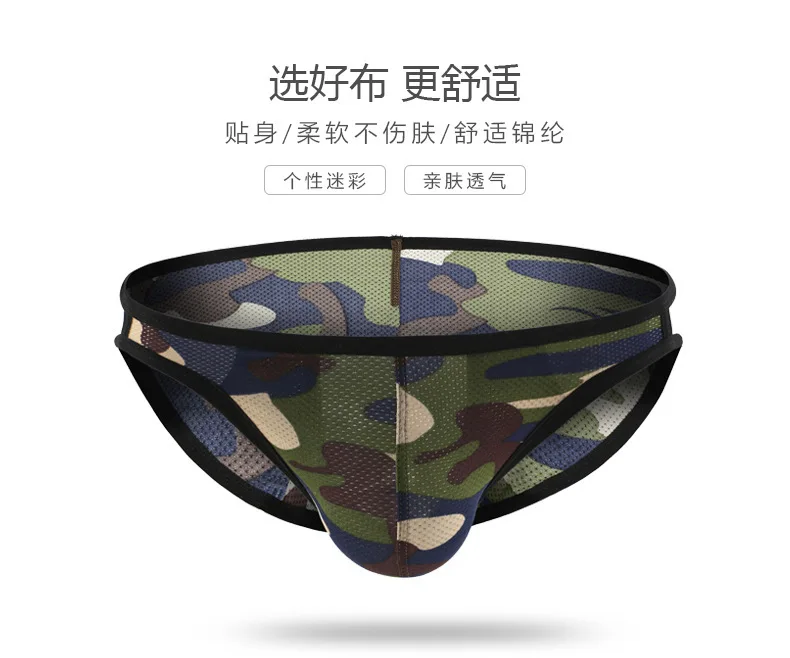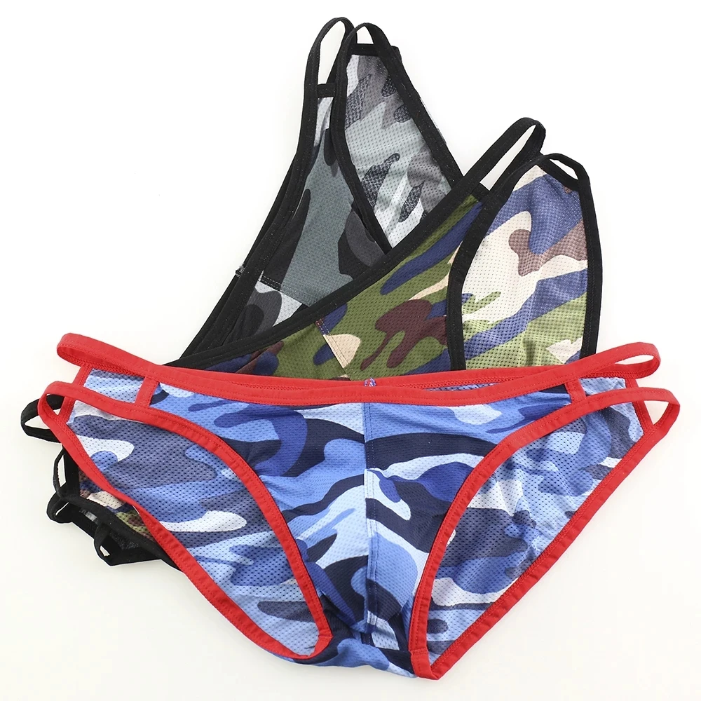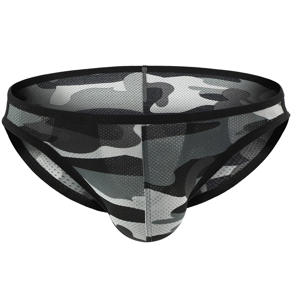 Мужские трусы бикини с U-образным выпуклым мешочком, черные камуфляжные брифы в сетку, сексуальное нижнее белье для мужчин, гей-трусы джоки