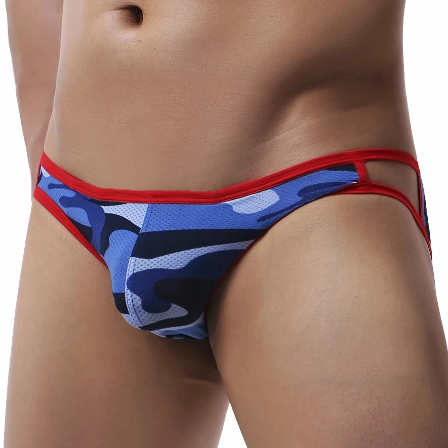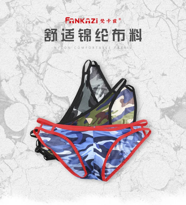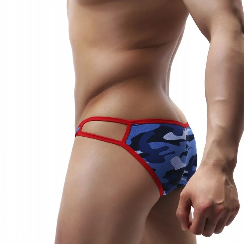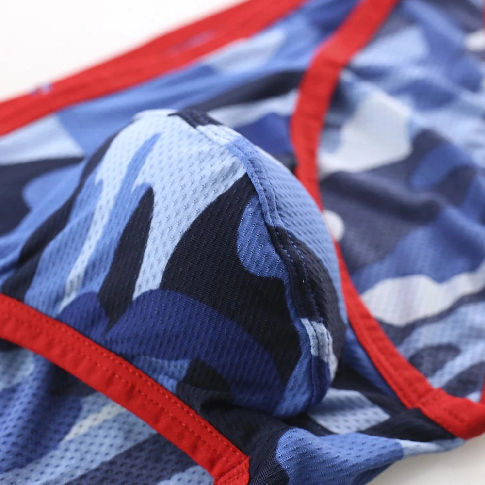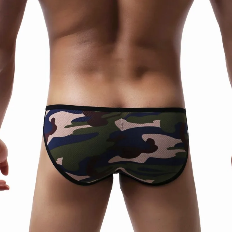 Мужские трусы бикини с U-образным выпуклым мешочком, черные камуфляжные брифы в сетку, сексуальное нижнее белье для мужчин, гей-трусы джоки
