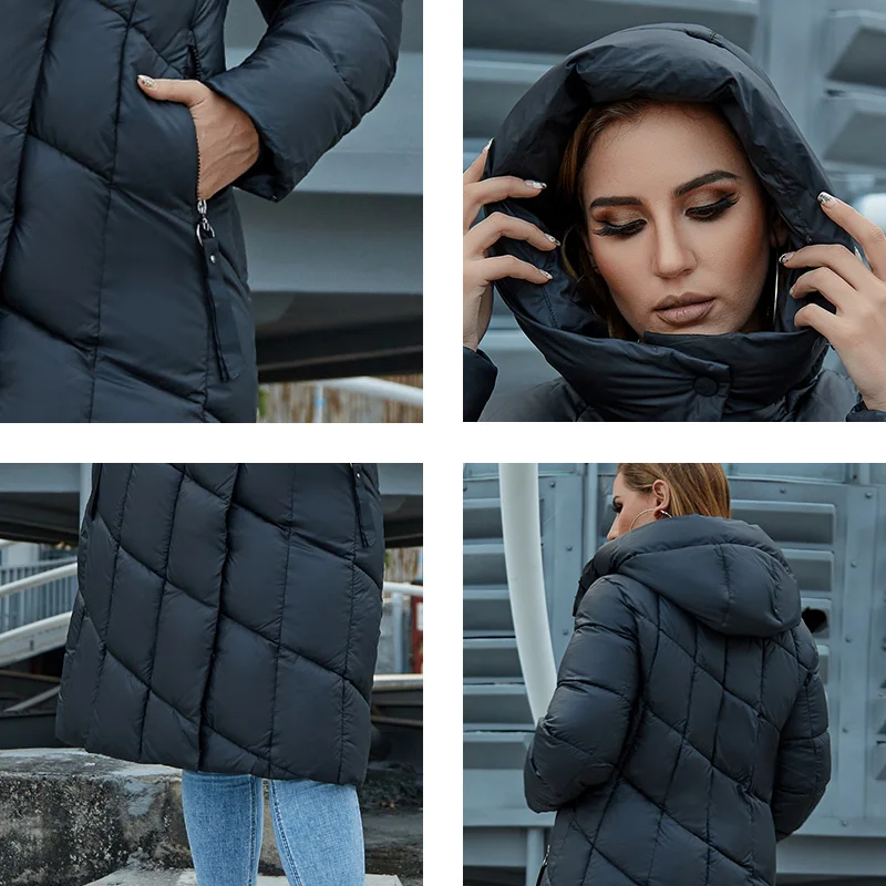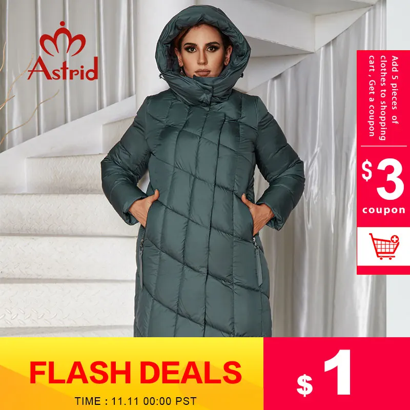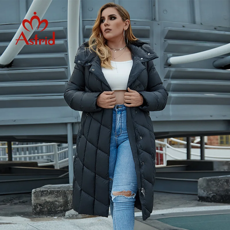 2021 Astrid зимняя куртка для женщин с алмазным узором и капюшоном, Плотная хлопковая одежда, длинная и теплая Женская парка размера плюс R-9212