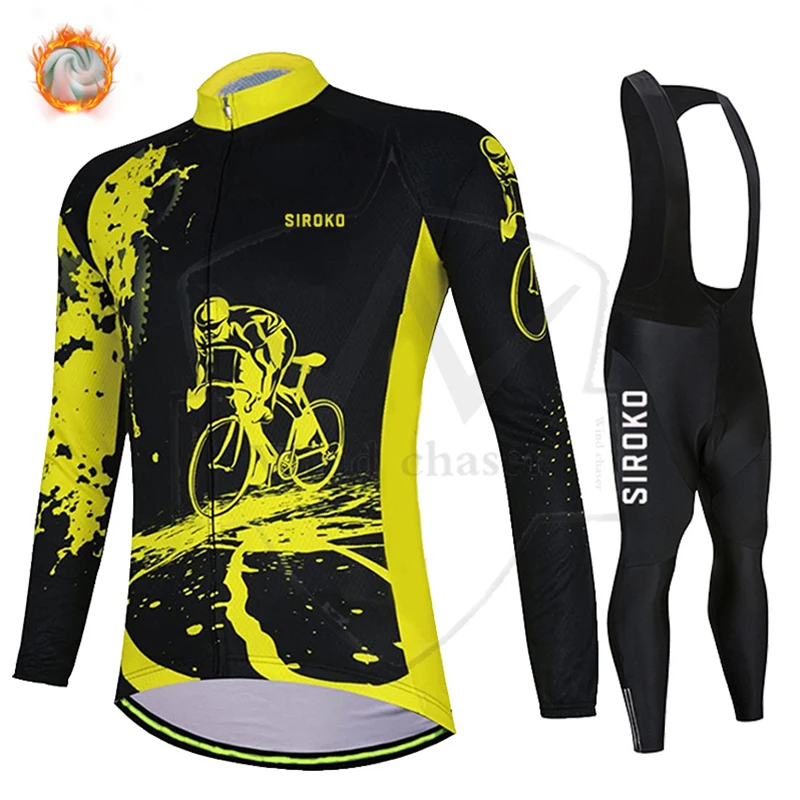 Комплект велосипедной одежды Siroko, зимняя флисовая одежда с длинн...