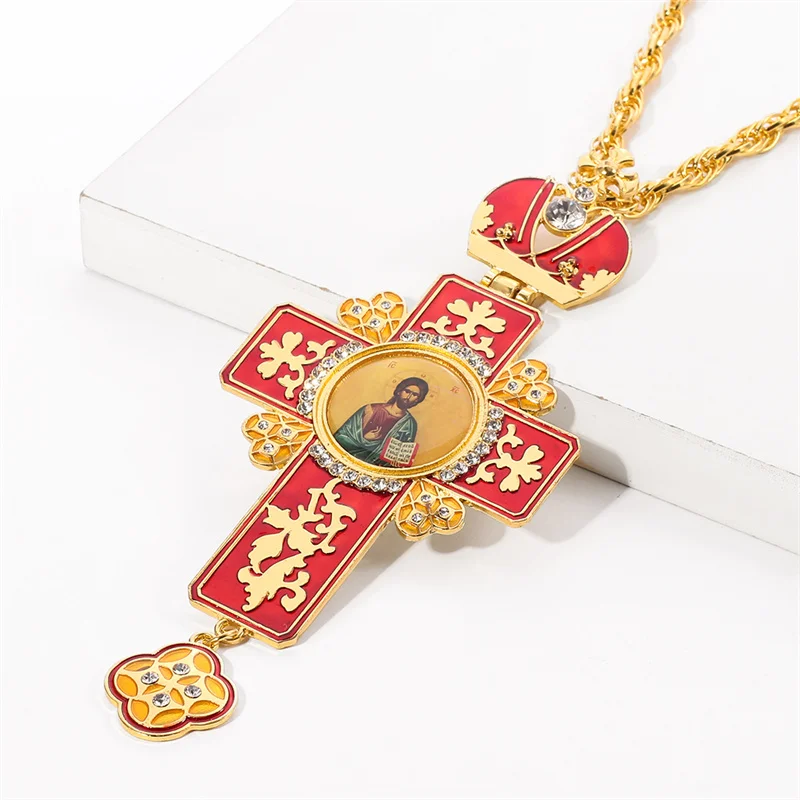 Модная Золотая цепочка с подвеской в виде буквенного Креста православного цвета, русская Греция, религиозная икона, византийское искусство, значок с крестом Иисуса, ожерелье