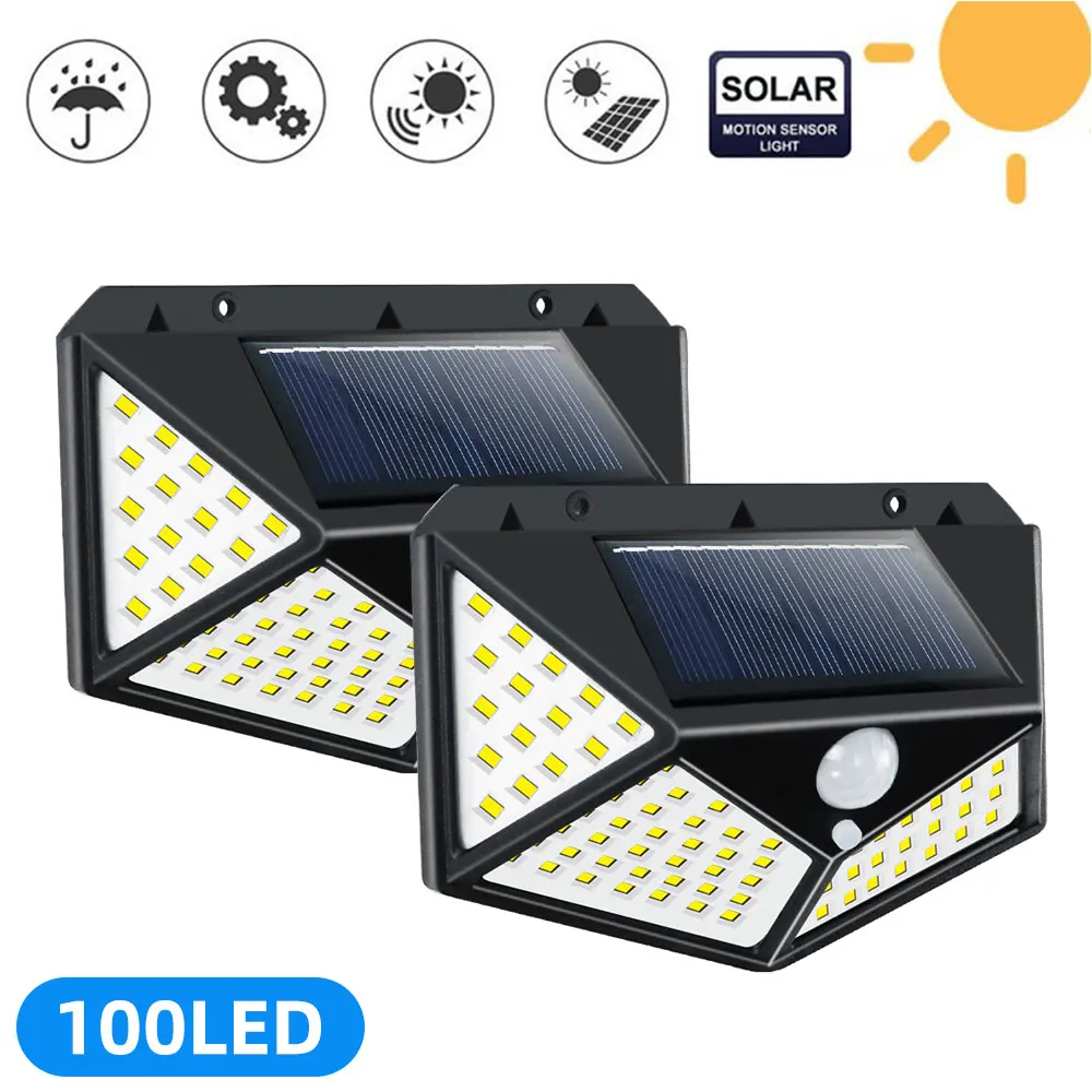 Уличный светильник на солнечной батарее с датчиком движения, водонепроницаемый портативный солнечный светильник для украшения сада, уличная настенная лампа, 3 режима, 100 светодиодов