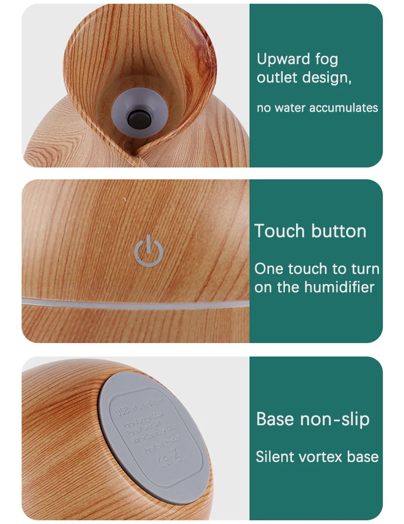 Деревянный увлажнитель воздуха, 130 мл, USB, распылитель эфирного масла, ультразвуковой увлажнитель, бытовой аромадиффузор, распылитель для ароматерапии со светодиодом