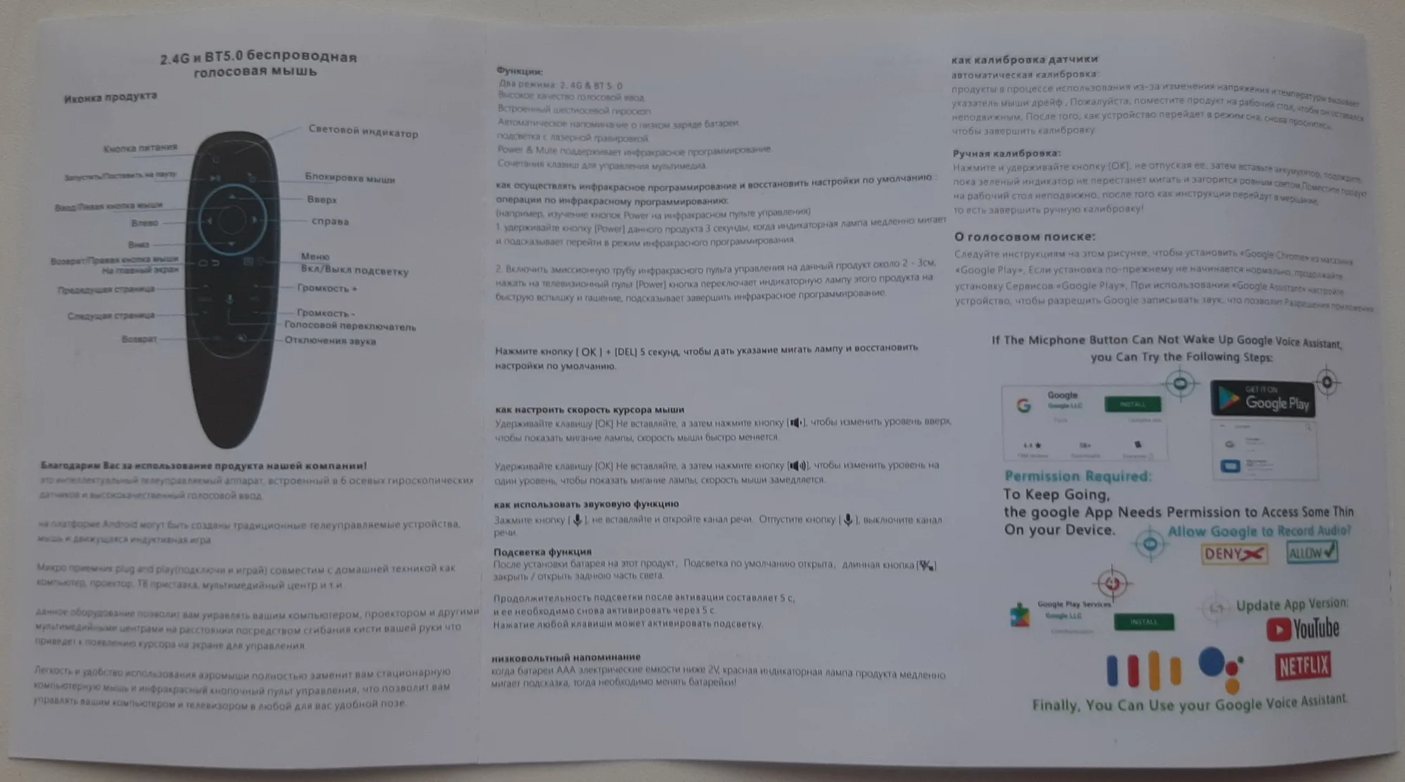Заказал по не внимательности. Думал в комплекте с боксом будет старый пульт, а лежал уже новый с голосом и гироскопом. Об этом пульте: голос работает хорошо, в вот корректно только с ATV, на голом андроиде то не слышит, то поиск не в приложении срабатывает, то вообще не срабатывает, вообщем для ATV пульт отличный. Подсветка клевая, мягкая глаз не режет, жаль нет тактильности хотя бы на кнопке подсветки (ну знаете как пупырышки на клавиатуре ФЫВАФ/ОЛДЖ) Кнопка Вкл/Выкл программируемая тоже очень полезная особенно для бюджетных боксов или если нет HDMI CEC. Заказывал с донглом, на всякий случай, но в этом боксе блютуз хороший и лупит нормально, в старом боксе работал на 3-5 метров и начинал отваливаться. Для бюджетников опять же донг - фича полезная. К сожалению этот пульт продал, потому как комплектный на голову выше, хоть и без подсветки.