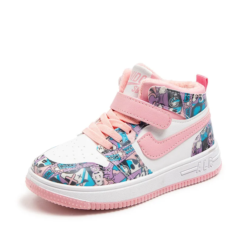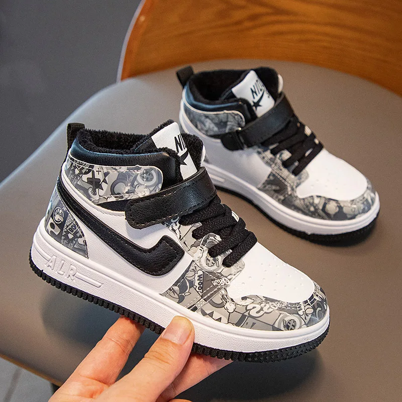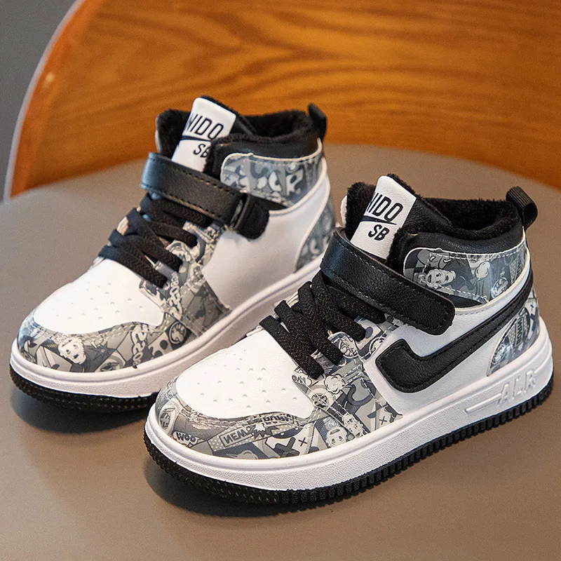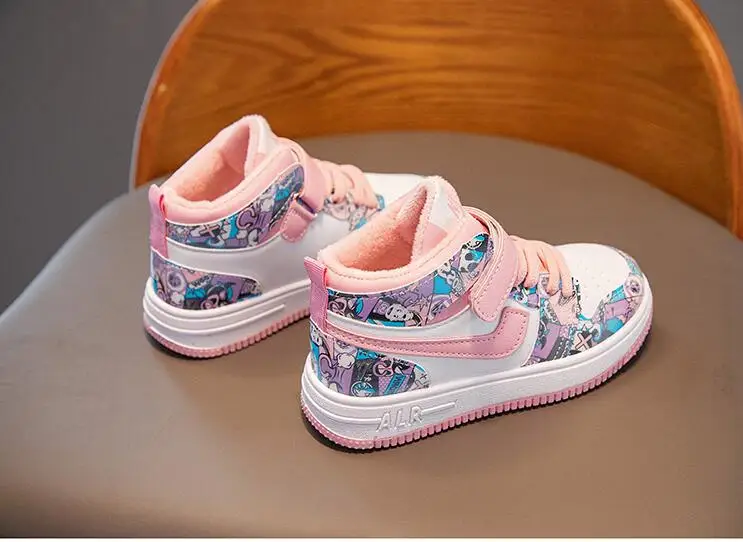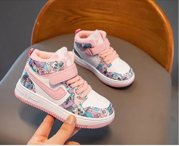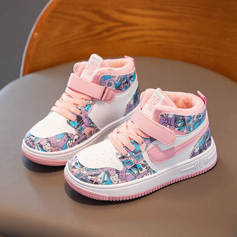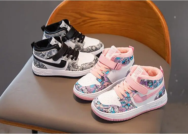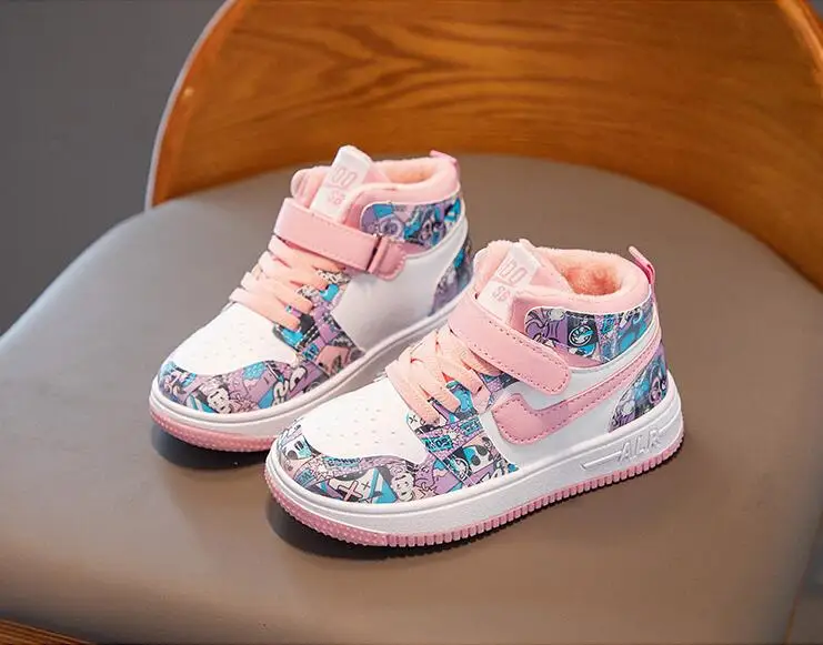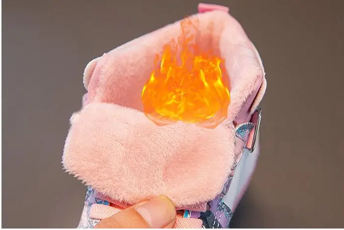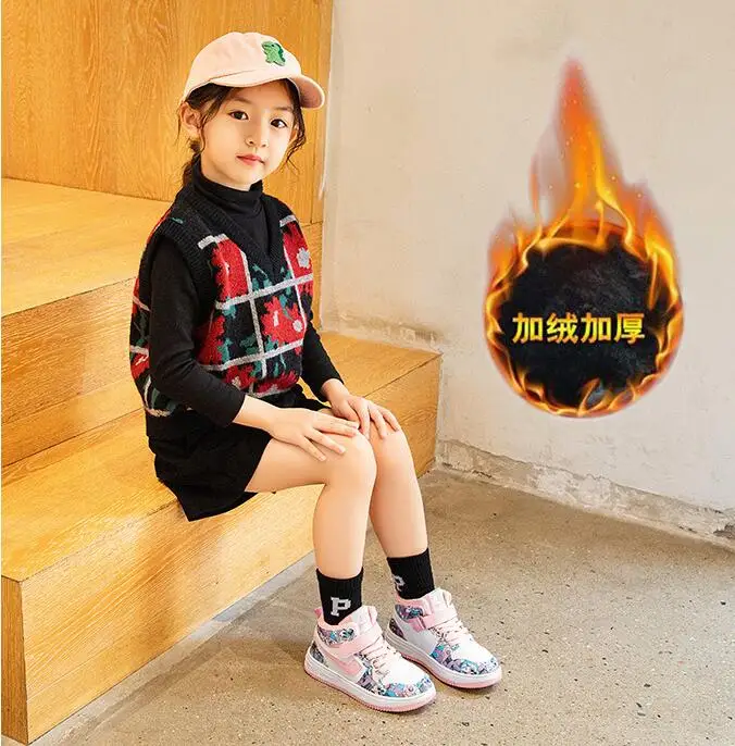 Зимние плюшевые Лоскутные детские повседневные ботинки, теплые мягкие кроссовки из ПУ для детей, Нескользящие высококачественные спортивные ботинки для мальчиков и девочек