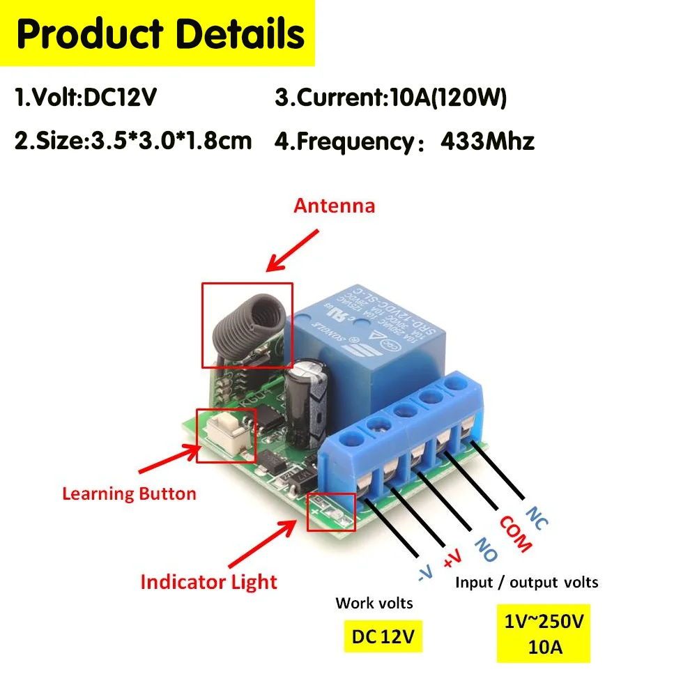 Беспроводной пульт дистанционного управления, 433 МГц, 12 В постоянного тока, 1 канал, релейный модуль приемника с дистанционным передатчиком ВклВыкл светодиодный светодиодного электронного замка