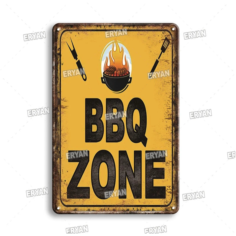 Металлическая пластина Pop BBQ Zone, Жестяная Табличка в стиле ретр...