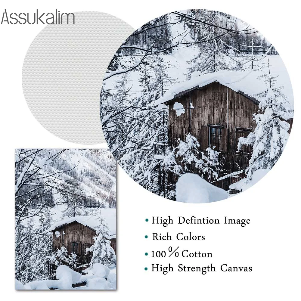 Скандинавский лес Снежный пейзаж настенная Картина на холсте постер...