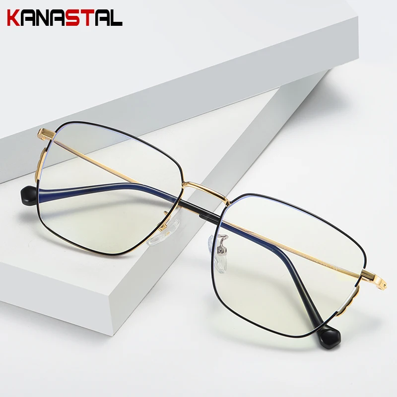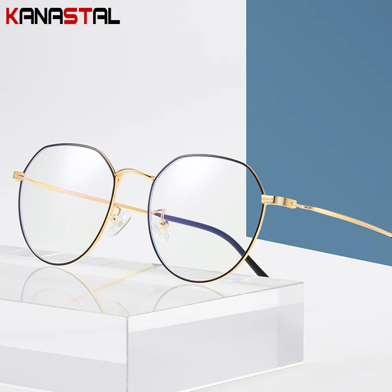 Женские очки с защитой от синего излучения, многогранные литературные металлические оправы для очков, мужские офисные компьютерные очки, точная оправа, линзы