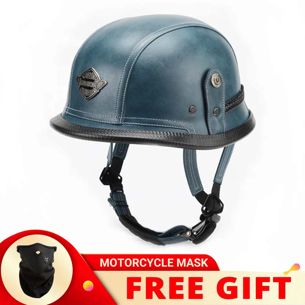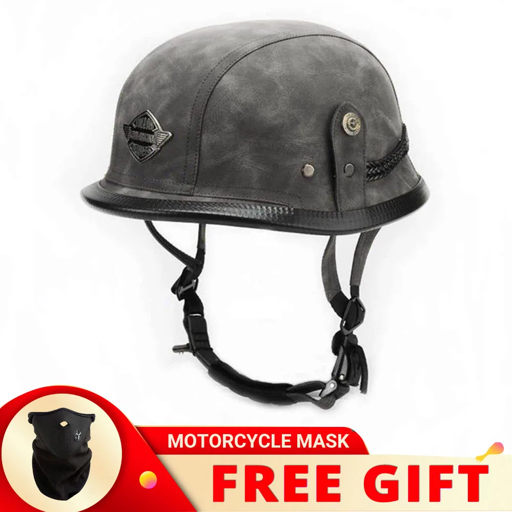 Мотоциклетный шлем с открытым лицом, каска из экокожи в немецком ст...