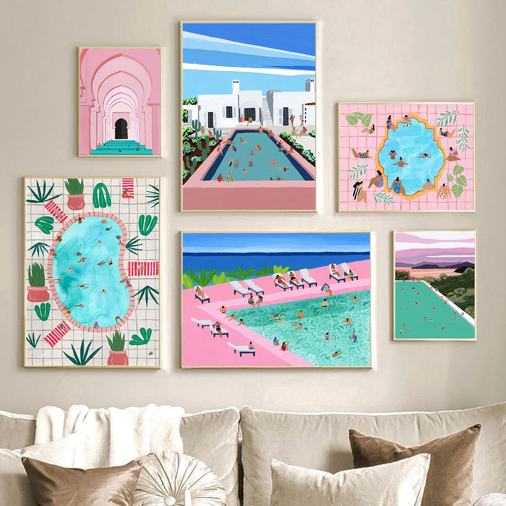 Настенное искусство, Фотофон с изображением дороги, розового берега, летнего бассейна вечерние пляжа, плавания, скандинавские принты для декора гостиной