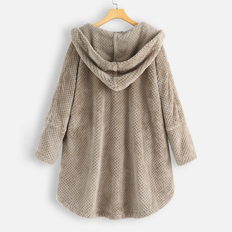 Женское флисовое пальто на пуговицах с капюшоном, обхват груди 150 см