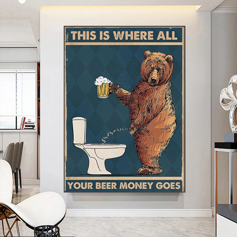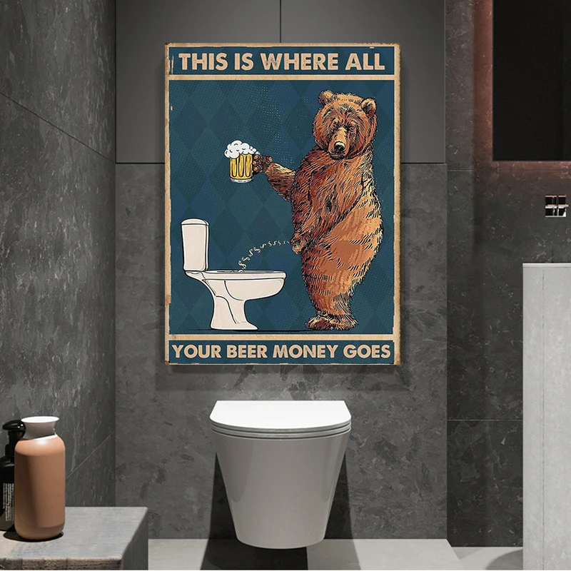 Медведь Grumpy питьевое пиво в ванную комнату Холст плакат абстрактная стена Художественная печать картина унитаз стена домашний декор картины