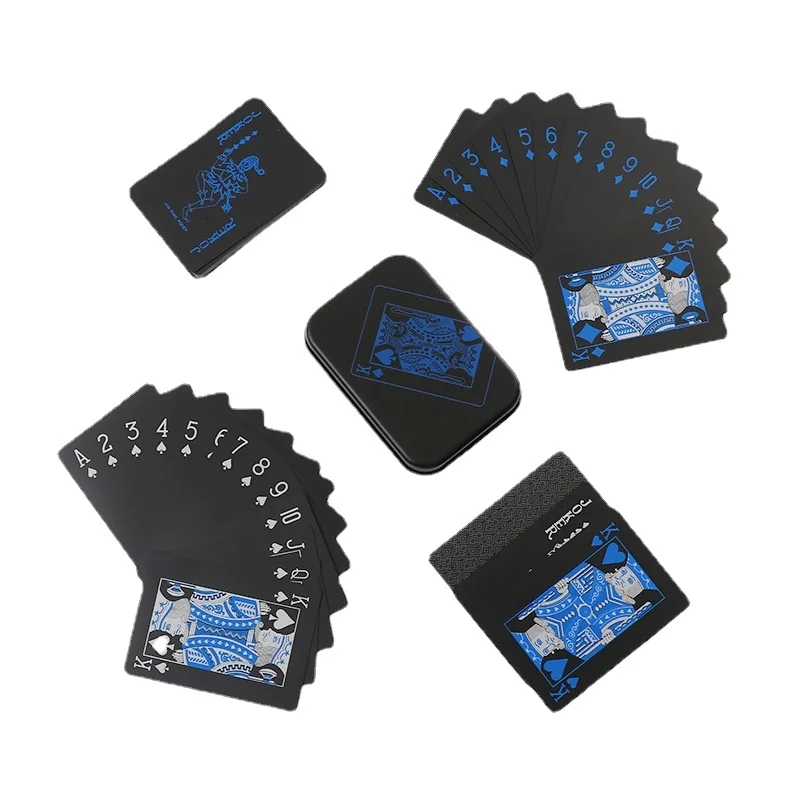 Водонепроницаемые черные игральные карты, качественные пластиковые ПВХ покерные креативные Подарочные Чехлы, карты для настольных игр, покерные карты с жестяной коробкой